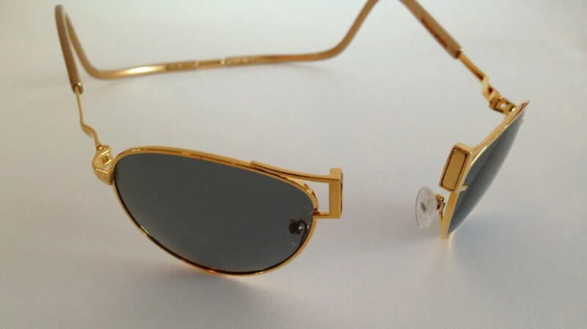 "كليك غولد" أسَّسها رون لاندو، الذي برع في مجال النظَّارات التجاريَّة لأكثر من 35 سنة. بعد تصميم نظَّارة القراءة الأغلى في العالم سنة 2012، هو تعاون مع مصمِّم المجوهرات الشهير عالميًّا هيو باور لصنع هذه النظَّارة الشمسيَّة الرياضيَّة. علمًا بأنَّ كلَّ قطعة منها مشغولة يدويًّا، واستغرقت أكثر من 40 ساعة لإكمالها. إشارة إلى أنَّ كلَّ جزء من النظارة، حتَّى الإطار والبراغي، مصنوعة من الذهب الصلب. ولم يُنتج سوى 100 زوج منها، في مقابل 75.000 ألف دولار أمريكي للنظارة.