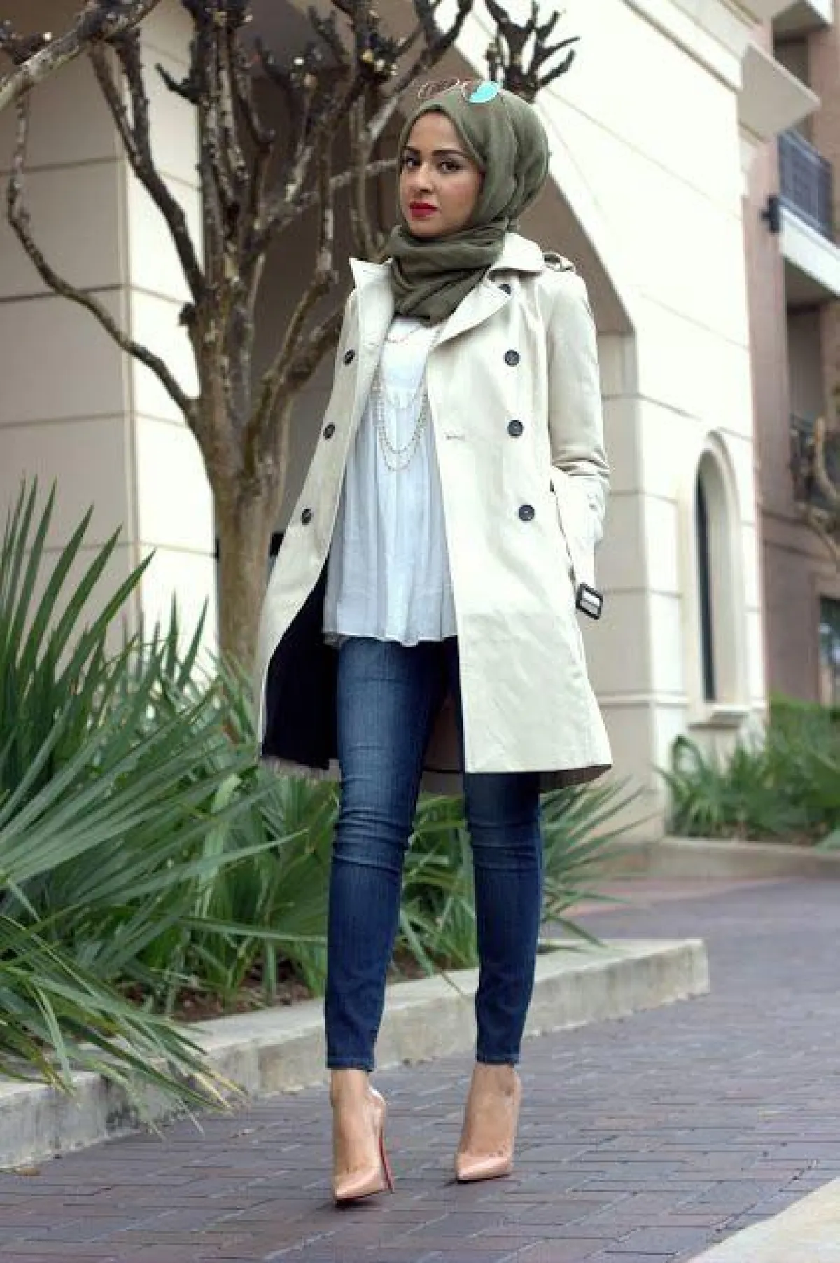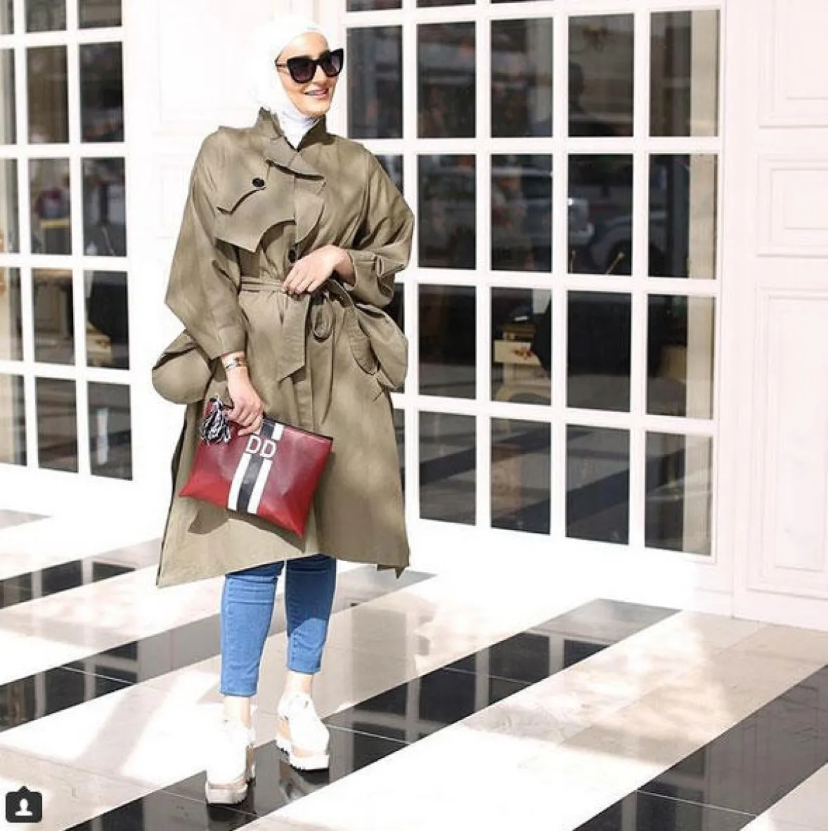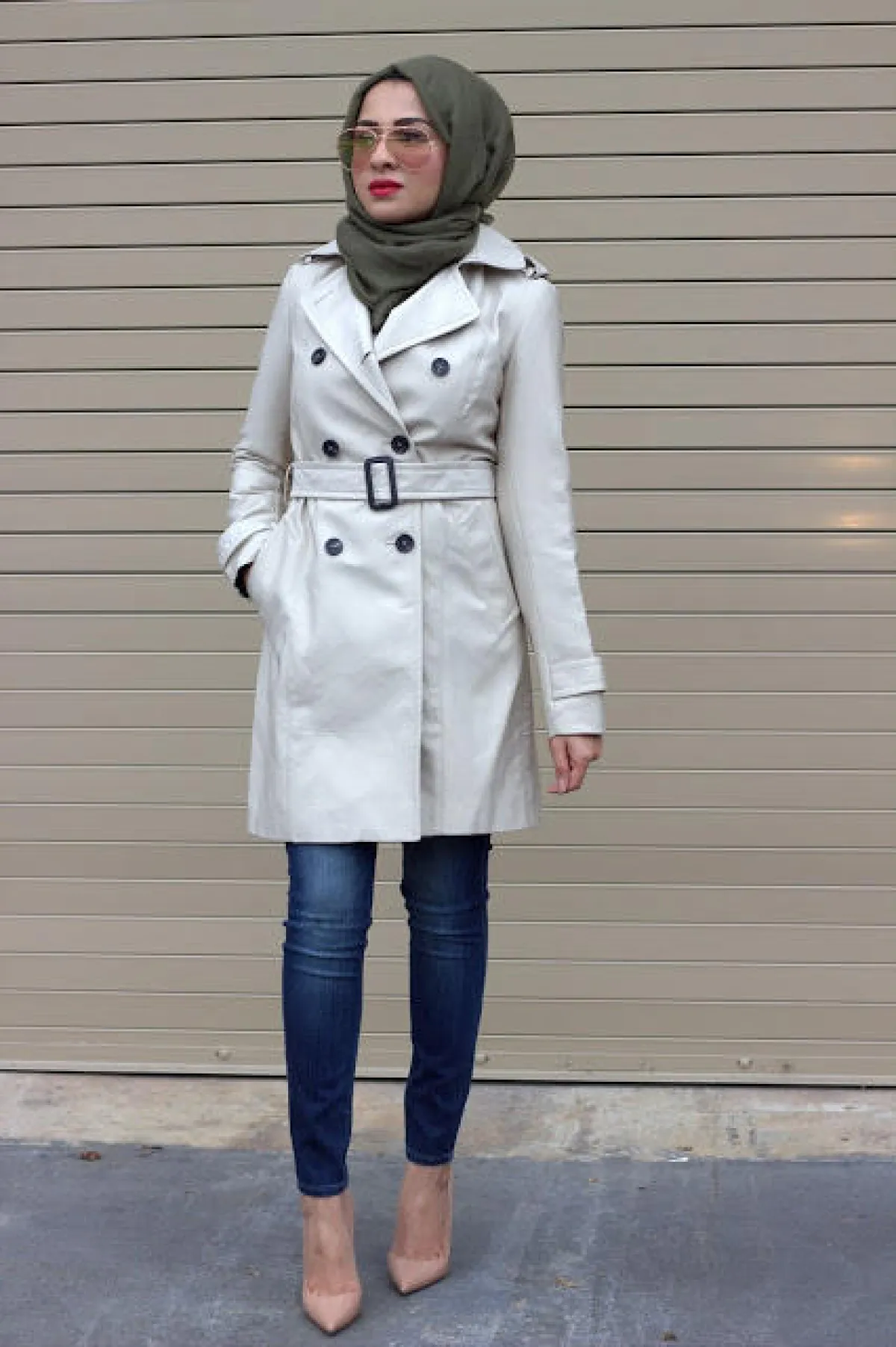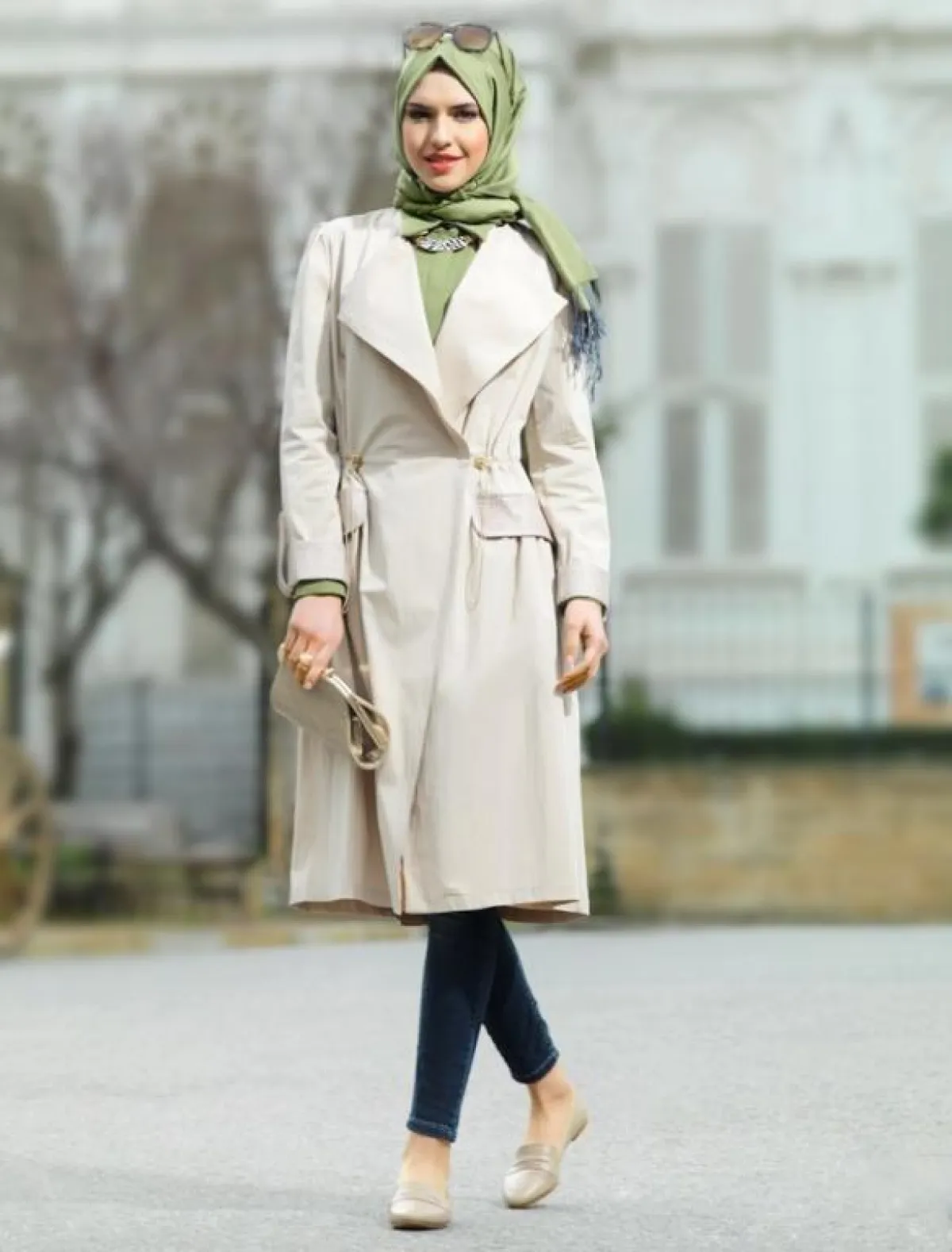 يمكن للمحجبة أن تعتمد معطف الـTrench في مختلف الإطلالات؛ حيث يتميز بتصميمه المحتشم والأنيق، ولذلك تفضله العديد من الفاشينيستات المحجبات.
