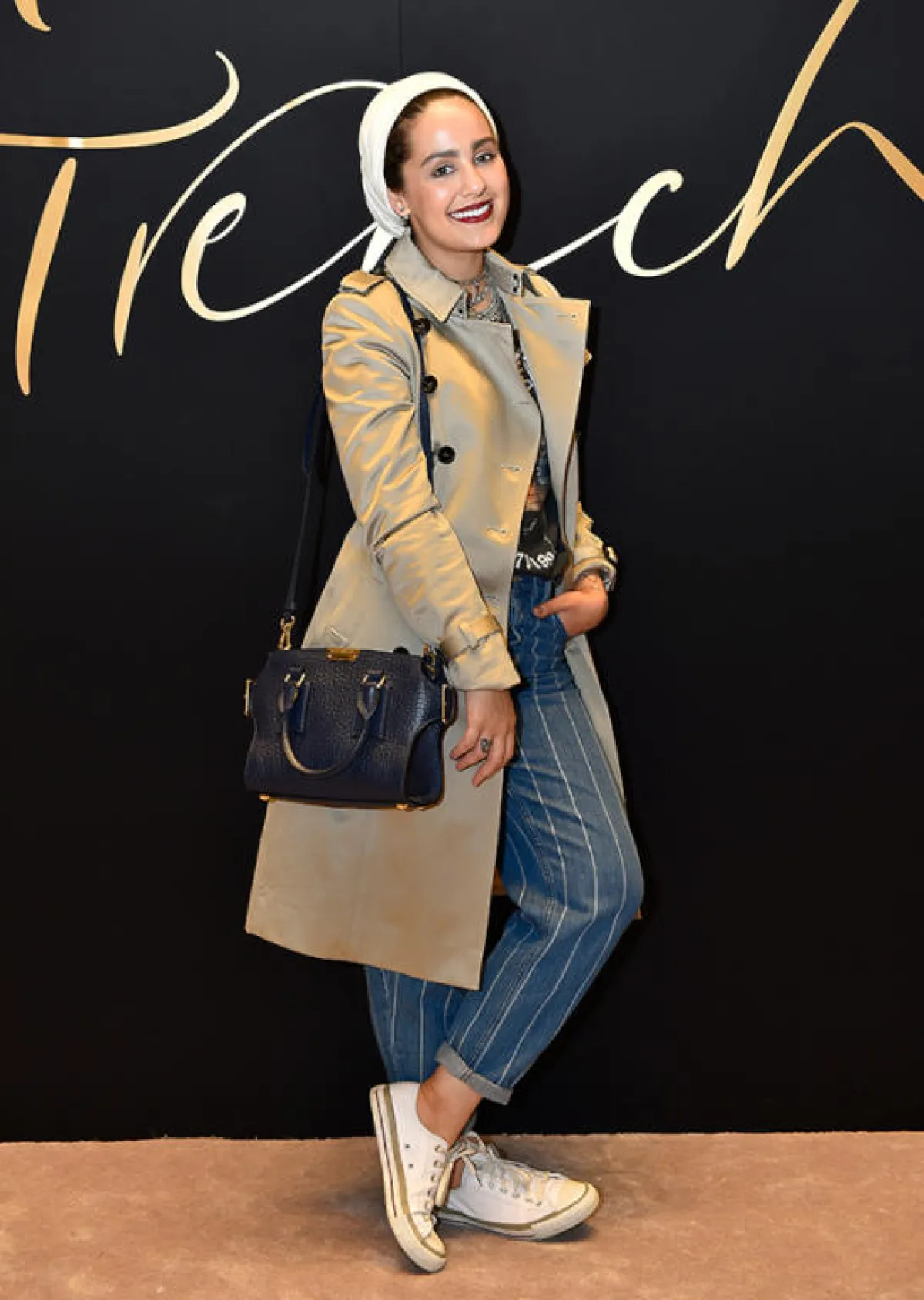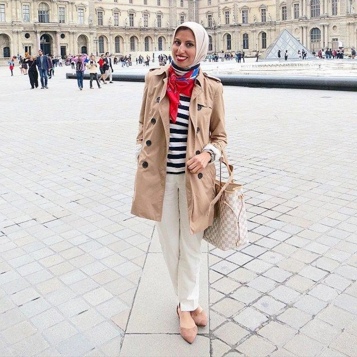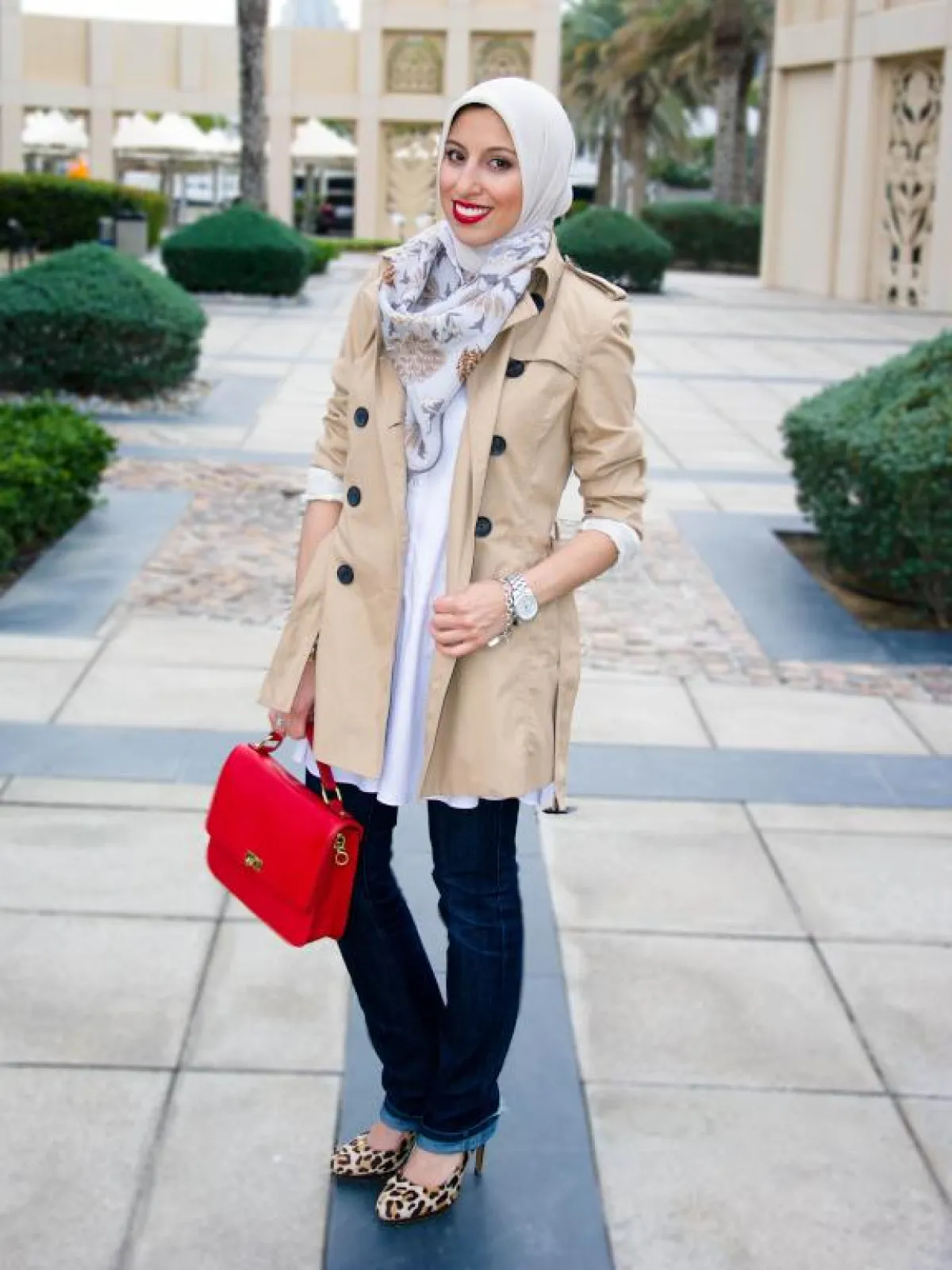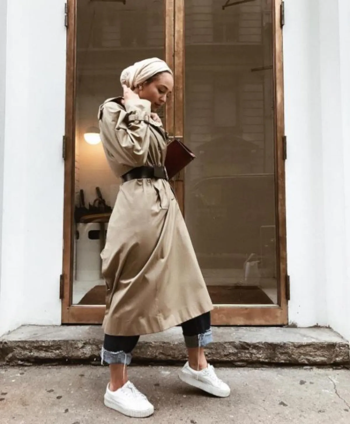 يمكن للمحجبة أن تعتمد معطف الـTrench في مختلف الإطلالات؛ حيث يتميز بتصميمه المحتشم والأنيق، ولذلك تفضله العديد من الفاشينيستات المحجبات.
