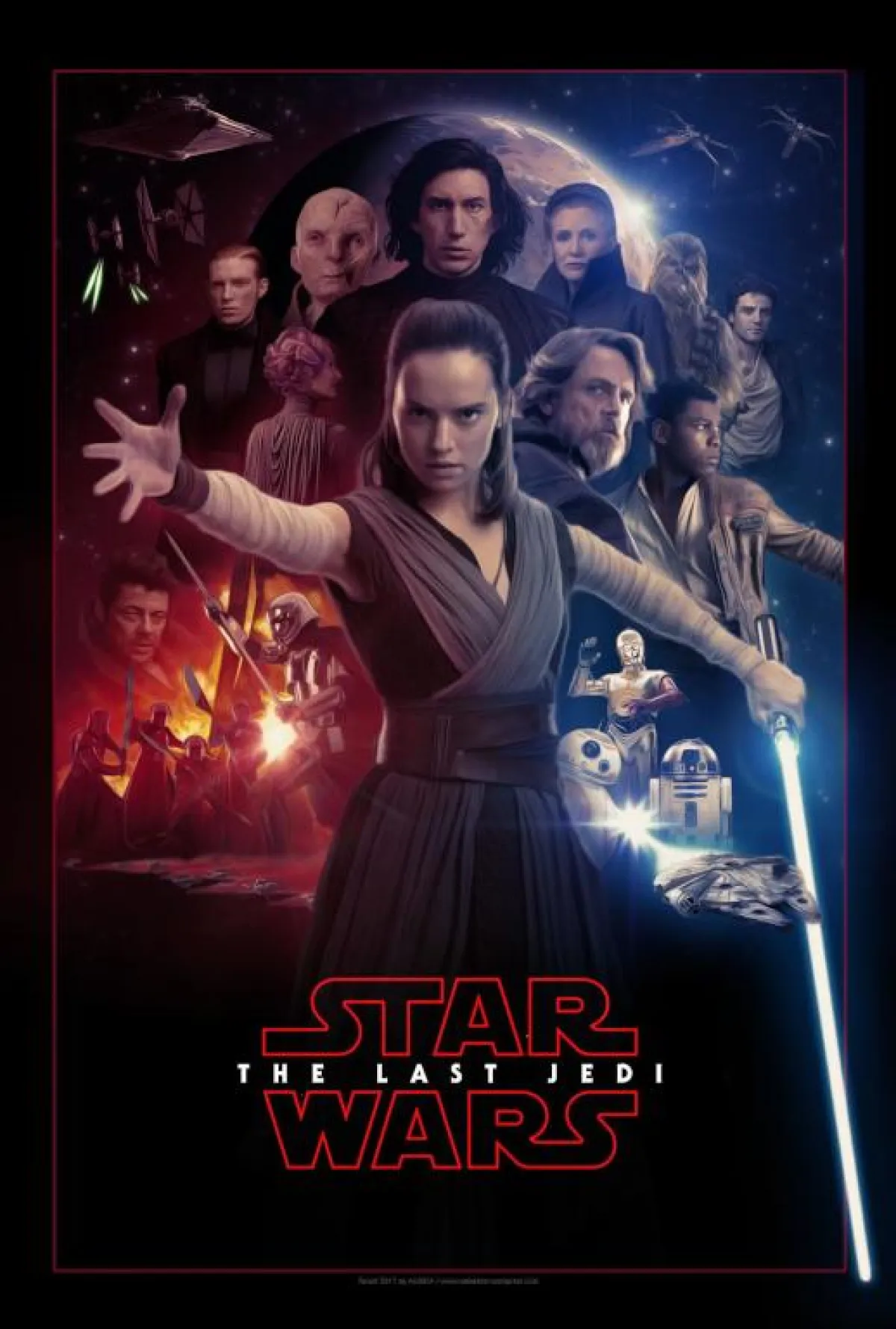 فيلم star wars the last jedi من تأليف وإخراج ريان جونسون، ومن إنتاج كل من "جي جي أبرامز"، و"كاثلين كيندي"، و"رام بريغمان"، و"توم كارنوسكي"، و"جاسن ماك غاتلين"، ويلعب دور البطولة في الفيلم، الذي يصنّف ضمن أفلام الخيال العلمي والأكشن والمغامرة، كل من دايزي ريدلي، وآدم درايفر، وأوسكار أيزاك، وهاريسون فورد، وسيُعرض رسميًّا يوم 15 ديسمبر الجاري بعد تأجيل امتد 7 شهور عن موعده الأصلي.