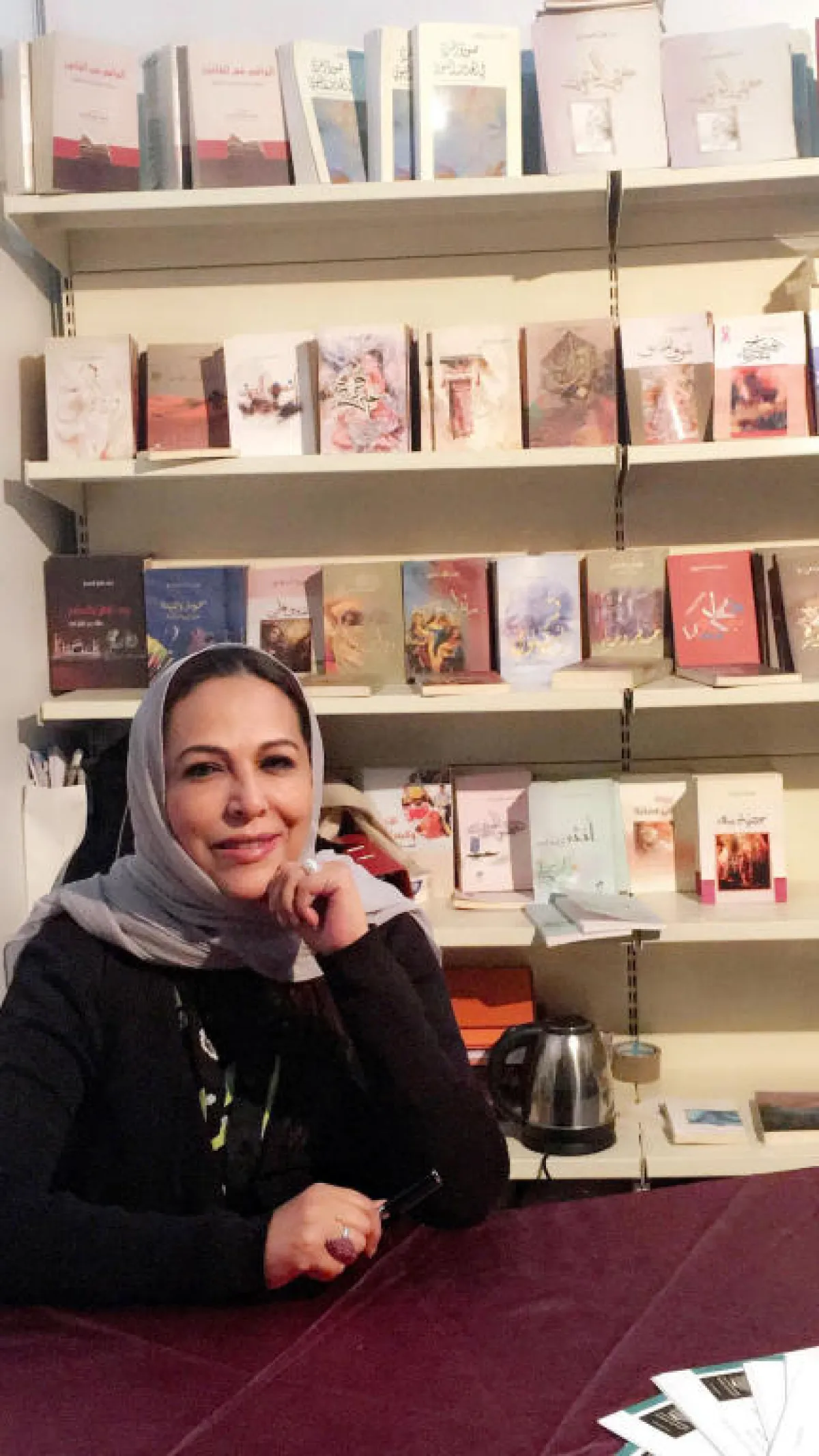 الأديبة إلهام بكر أثناء توقيع روايتها أحلام خادعة في معرض بيروت الدولي للكتاب