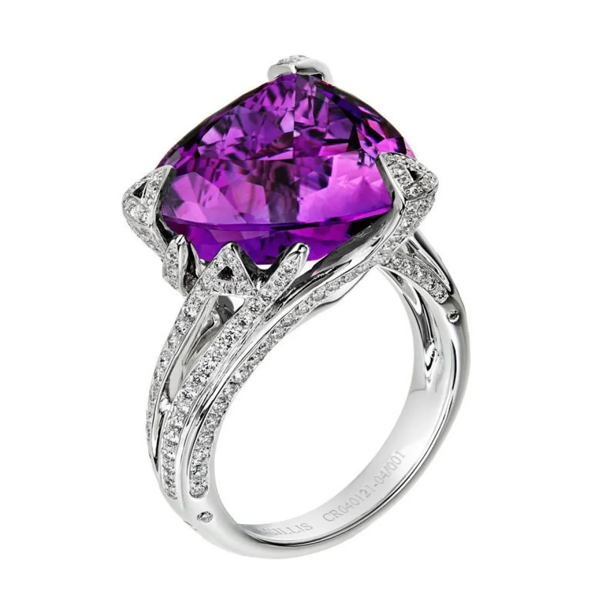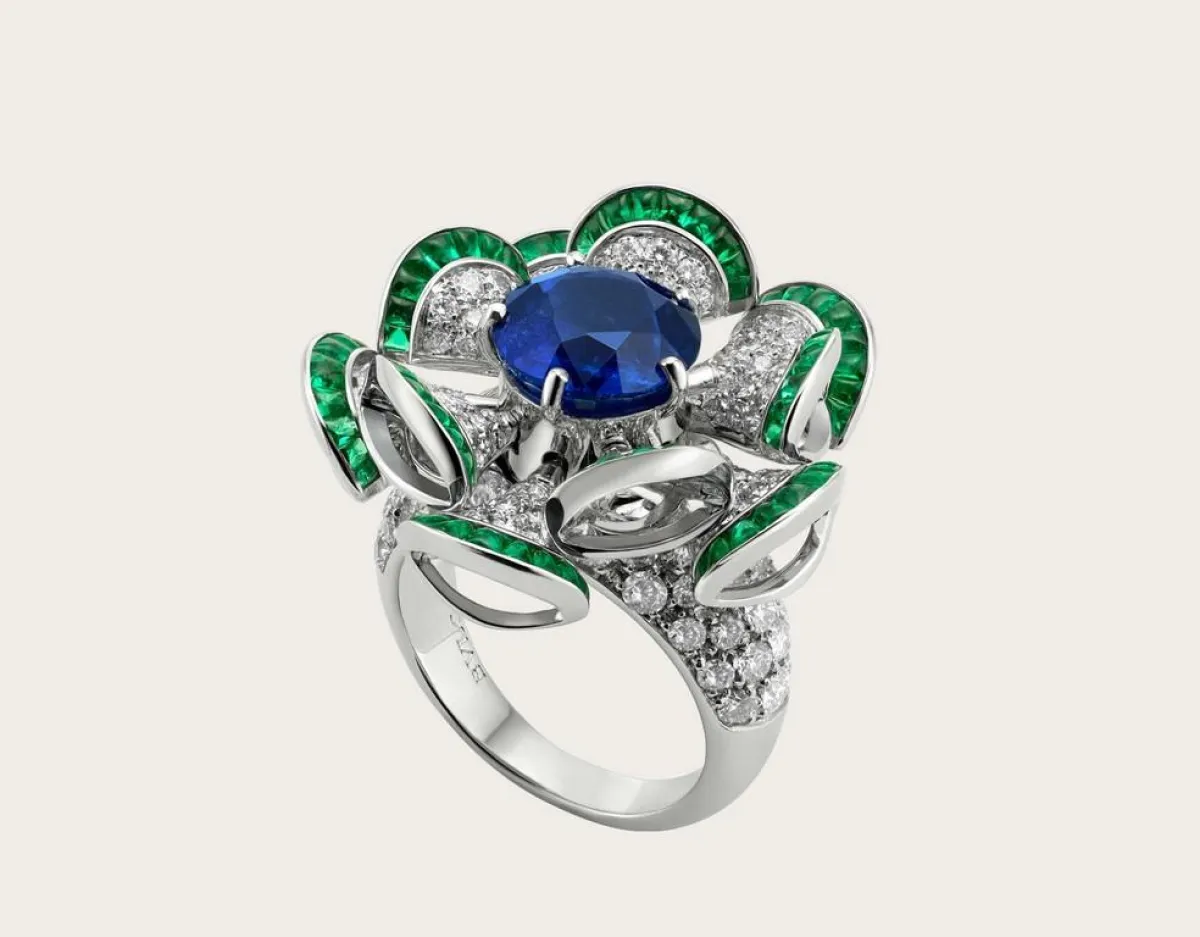 اختاري خاتماً بحجم بارز، مرصّع بالأحجار الكريمة، فقد تكتفين به وحده! هذا النوع من التصاميم يحمل قيمة كبيرة وبمقدوره أن يزيد من رفاهية إطلالاتك وترفها.
