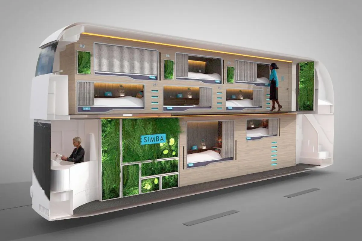 وتكشف الصور المبكِّرة للابتكار الجديد عن الغابات العمودية في الحافلة التي تدمج تنقية الهواء والنباتات المهدئة، كما ستحتوي غرف النوم المتطورة على معالجات عزل الصوت، والستائر الصوتية السوداء، ونظام العلاج بالضوء الكهربائي المجفف، لتكون الحافلة ملائمة للنوم.
