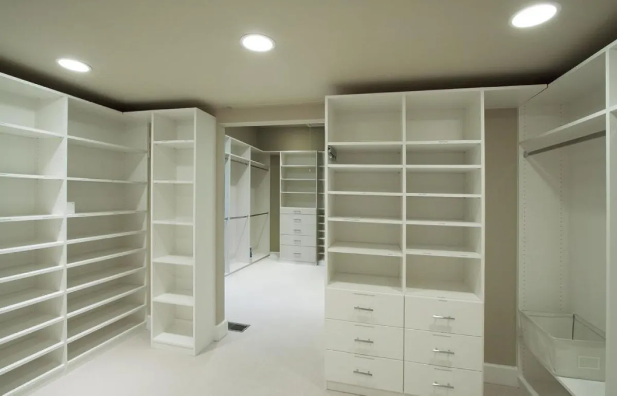 في منزل نيكول كيدمان Nicole Kidman، تؤثِّث غرفة الملابس خزائن مفتوحة وأدراج وافرة