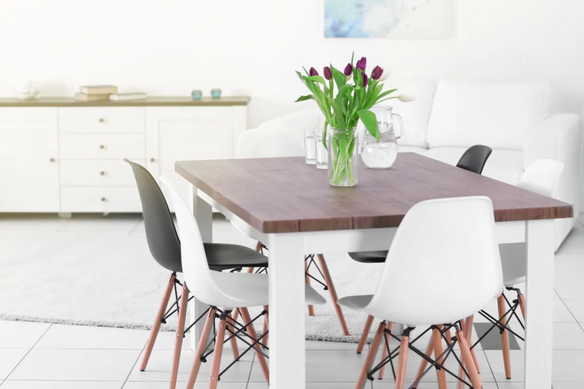 | لا يبدو أنَّ الاستغناء عن إحدى القطع الأساسيَّة في المنزل بسبب ضيق حجمه، كطاولة الطعام مثلًا، حلًّا ناجعًا، بل يُمكن وضع هذه الأخيرة في أحد أركان المعيشة، لا سيَّما طاولة الطعام الدائريَّة الصغيرة والكراسي مُقوَّسة التصميم ومتوسِّطة الحجم. كما يُمكن الاكتفاء بكراسي السفرة، من دون تلك الجانبيَّة في غرفة المعيشة.