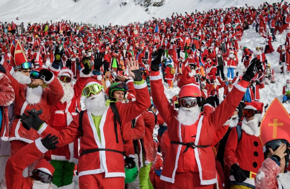 مع قدوم موسم أعياد الميلاد ورأس السنة، افتتح موسم التزلج في منتجع فيربيه Verbier بجبال الألب السويسرية، مؤخرًا، بتجمع طريف لـ 2000 شخص يرتدون ثياب سانتا كلوز، حيث قدم المنتجع فرصة تزلج يومية لكل شخص يرتدي ثياب سانتا كلوز.