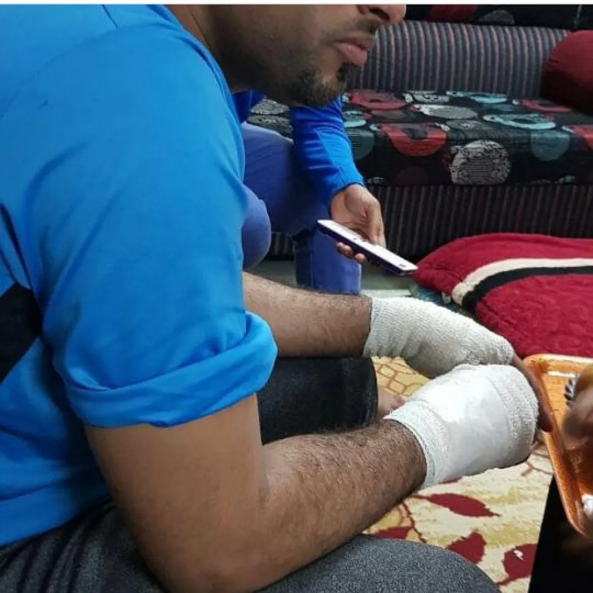 الشاب قاسم المويل مستلقياً بعد إنقاذ أسرة من موت محقق