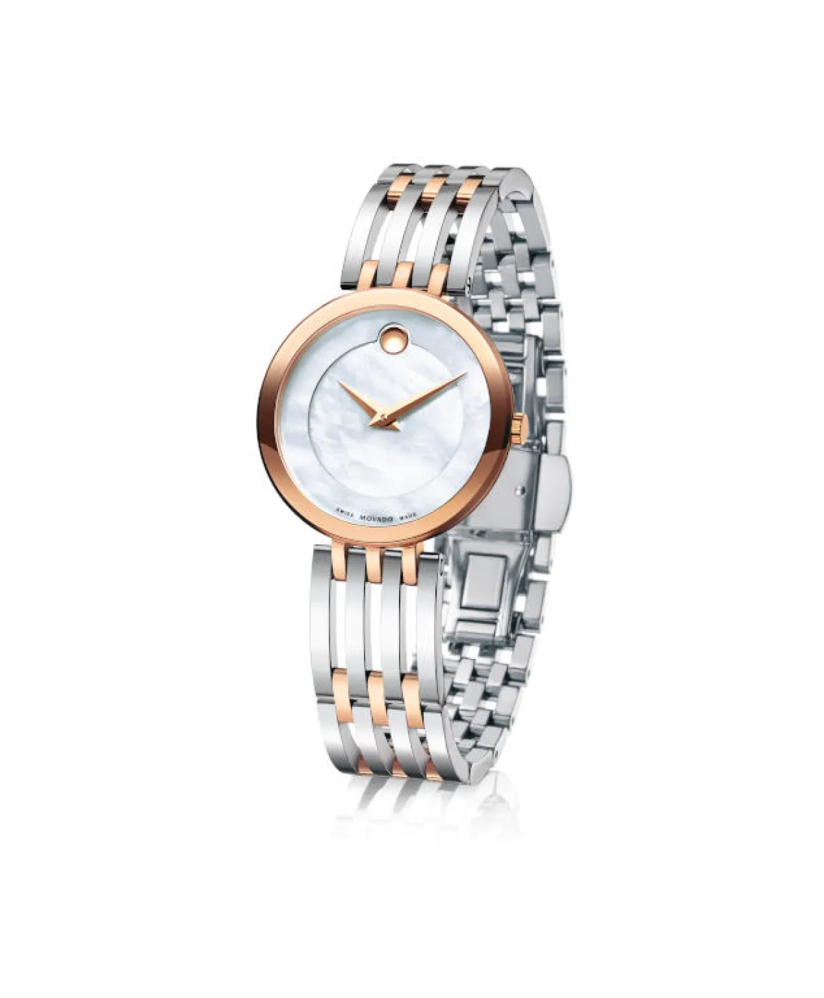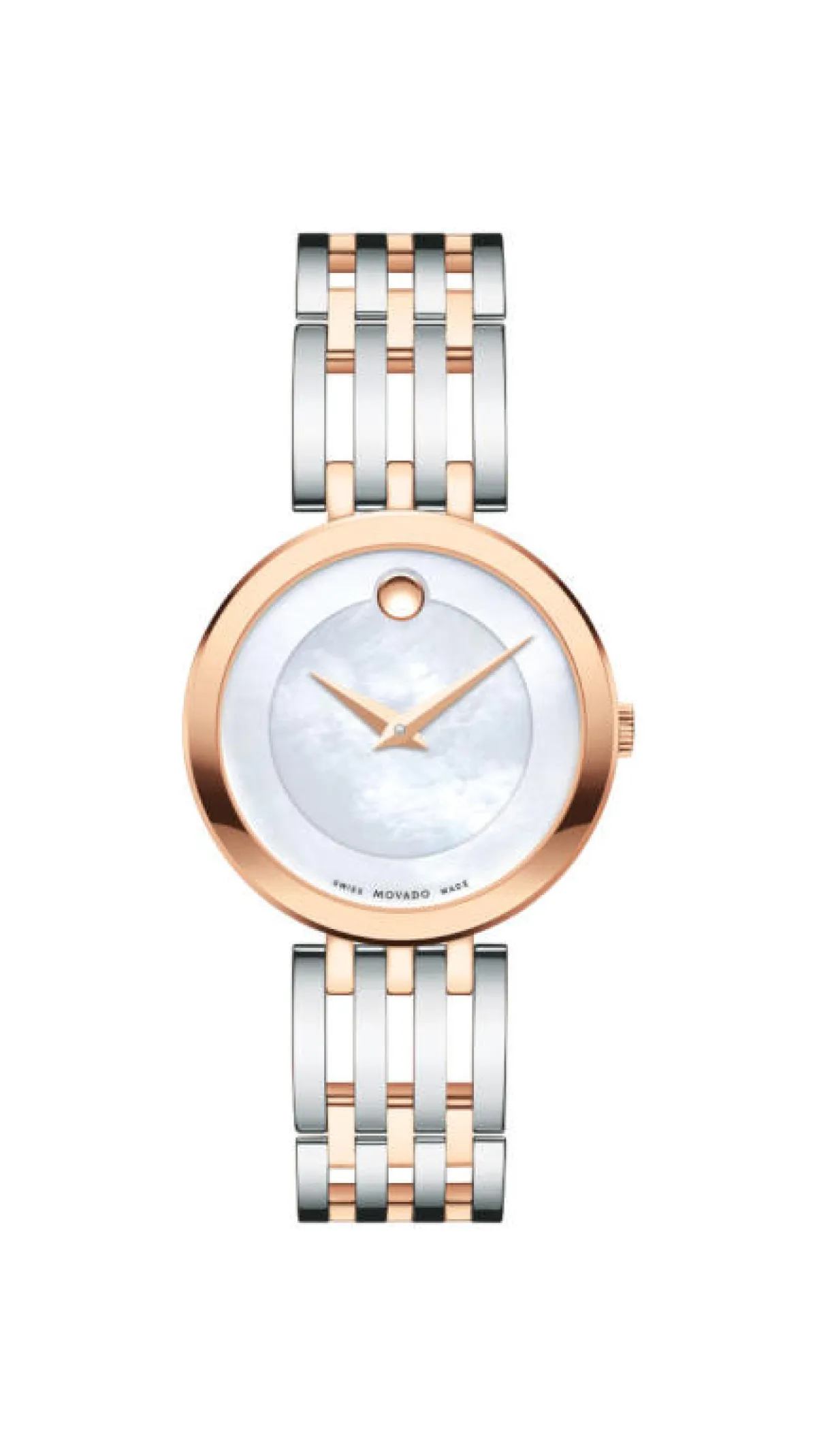 الآن في عام 2017، تضيف Movado طرازاً أنيقاً جديداً للنساء إلى هذه المجموعة المتطوّرة. تتمتّع Esperanza الجديدة بقابليّة تغيير مترفة بين لونَين، وهي مصنوعة من الفولاذ المقاوم للصدأ ومن علاج PVD بالذهب الوردي مع علبة مستديرة بقطر 28 ملم وسماكة 5،70 ملم تقريباً. ويُحيط الإطار المصقول بلون الذهب الوردي ميناء Museum اللامع والمصنوع من عرق اللؤلؤ. ويتمتّع الميناء بتفاصيل بسيطة مثل الحلقة الخارجية المضروبة بالرمل، والنقطة بلون الذهب الوردي، وبعقارب دوفين متوافقة للساعات والدقائق بلون الذهب الوردي.
