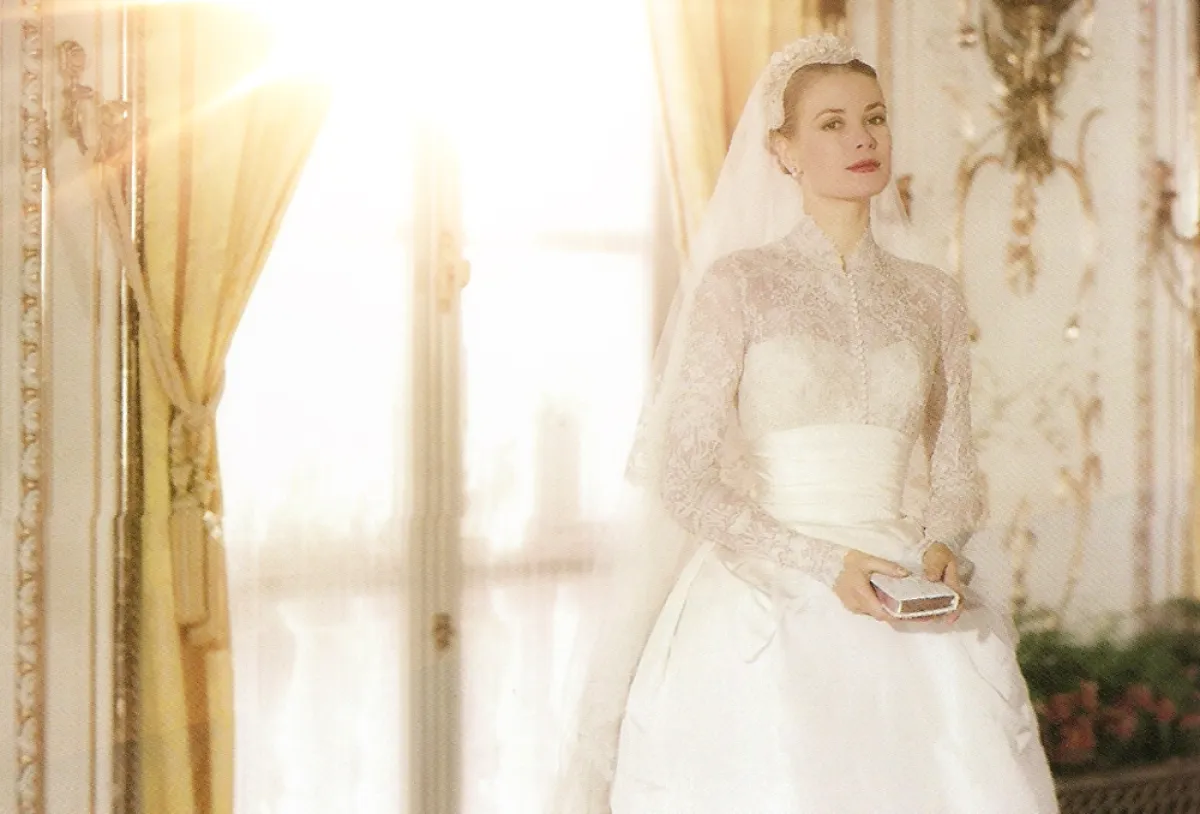 وكان زفاف الأميرة "غريس كيلي" إلى الأمير "رينيه" الثالث، من الأعراس التي خلّدها التاريخ، فلأول مرة يتزوج أمير أوروبي بنجمة سينما عالمية أمريكية، تتميز بجمال خارق وأناقة نادرة، وقد كان فستان زفافها رمزًا للأناقة التي كانت تتميز بها "غريس كيلي"، وقد وصفته الصحافة آنذاك بأجمل فساتين الأعراس في تلك الفترة، صممته هيلين روز Helen Rose والتي كانت تعمل كمصممة أزياء Costumière لدى شركة "ميترو غولدين ماير"، وهي الشركة التي كانت تُنتج أفلام الأميرة "غريس كيلي"، والتي سبق وصمّمت لها الفساتين التي ظهرت بها في أربعة أفلام أخرجها "ألفريد هيتشكوك" في حقبة الستينيات، جاء الفستان عبارة عن تنورة على شكل جرس Clocheوُضعت تحتها ثلاث طبقات من القماش، لكي تحافظ التنورة على شكلها الدائري، أما أعلى الفستان فصُنع من "دانتيلا بروكسل" Dentelle de Bruxelles ، تميز بياقة مرتفعة نسبيًا على مستوى الرقبة، وكذلك بأكمام طويلة، طُرّزت الدانتيلا بأكملها بأحجار اللؤلؤ، لإضفاء طلة فاخرة وملوكية على الفستان .