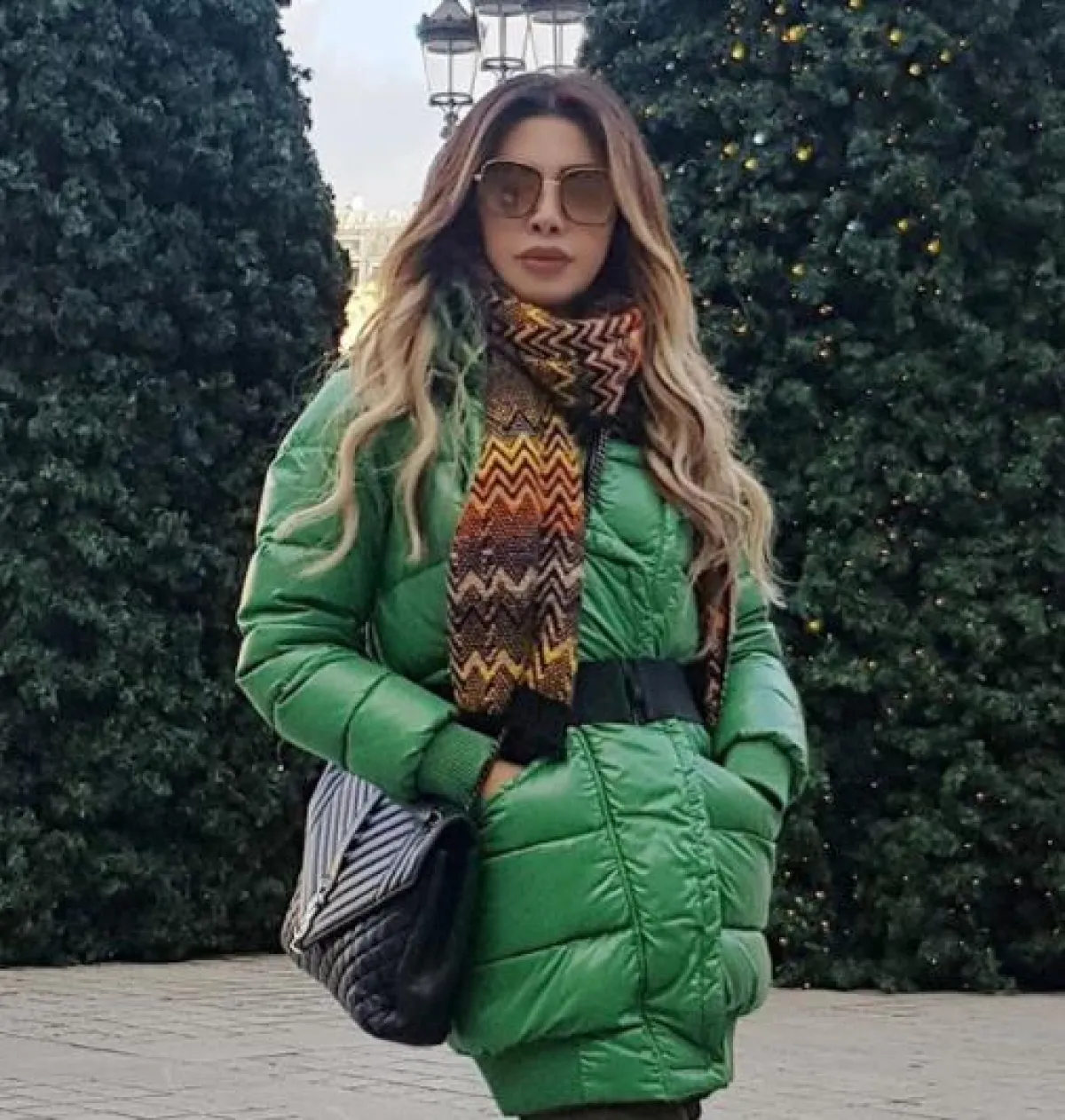 وقد بدت النجمة بكامل حيويتها بإطلالتها العصرية التي نسقت ألوانها لتتناسب مع أجواء عطلة الأعياد.