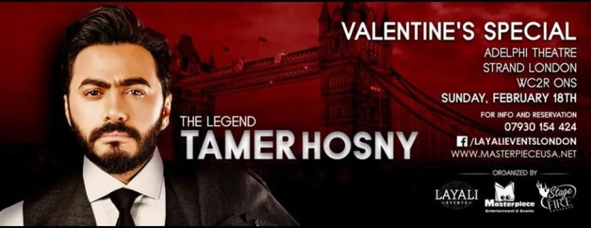 نشر الفنان تامر حسني بوستر حفله المقبل المقرر اقامته في العاصمة الانجليزية لندن وذلك عبر حسابه على موقع التواصل الاجتماعي "فيس بوك".