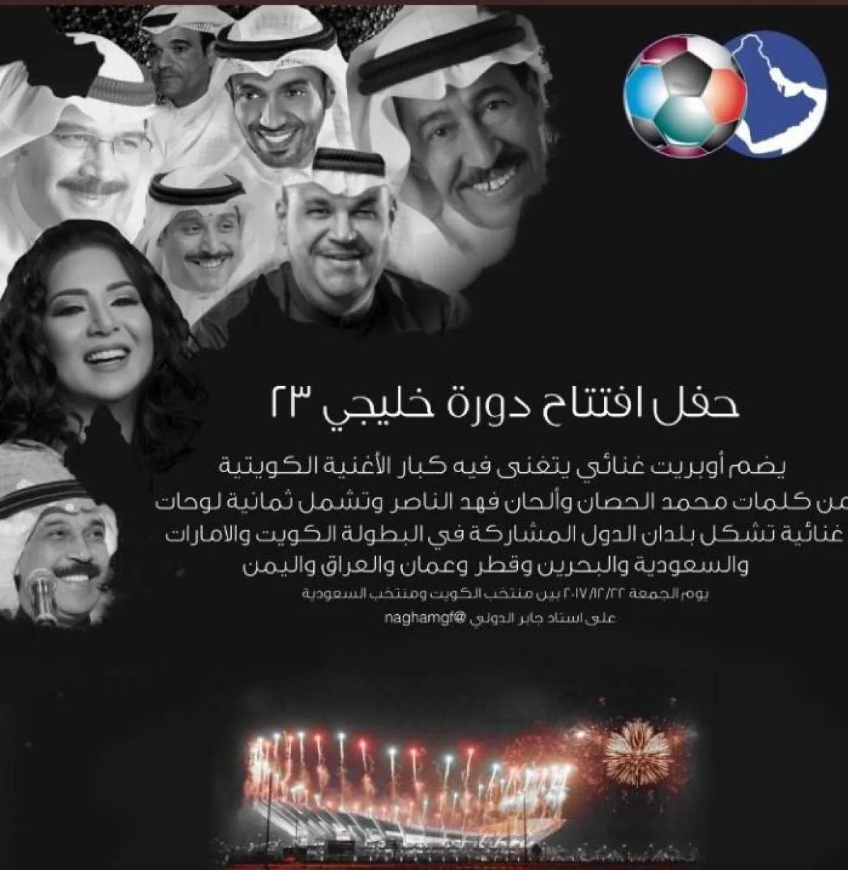 وكانت قد انطلقت حملة، انتقدت البوستر الإعلاني الخاص بحفل افتتاح دورة خليجي 23 التي تُظهر صور نجوم الكويت الذين شاركوا في تقديم أوبريت غنائي خاص بهذا الحدث الرياضي، وهو من كلمات محمد الحصان، وألحان فهد الناصر، حيث رأى البعض أنّ صورة الفنان الكويتي لا تليق بها، وخصوصًا أنّ صورته جاءت صغيرة جدًّا وفي أسفل البوستر.