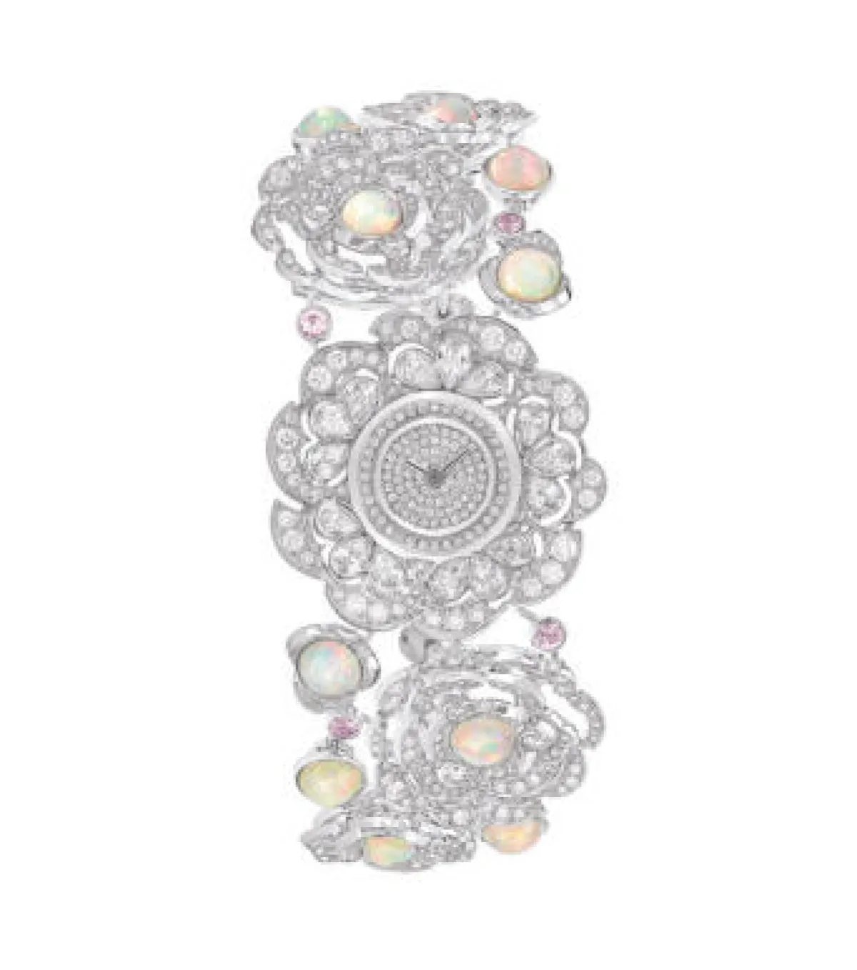 1 - ساعة "بيتال دو كاميليا أوبال" petals de camellia opals من " شانيل" Chanel مصنوعة من الذهب الأبيض عيار 18 قيراط ومرصعة بالماس ومزخرفة بكاملها بطريقة فاخرة وبأسلوب راقي
