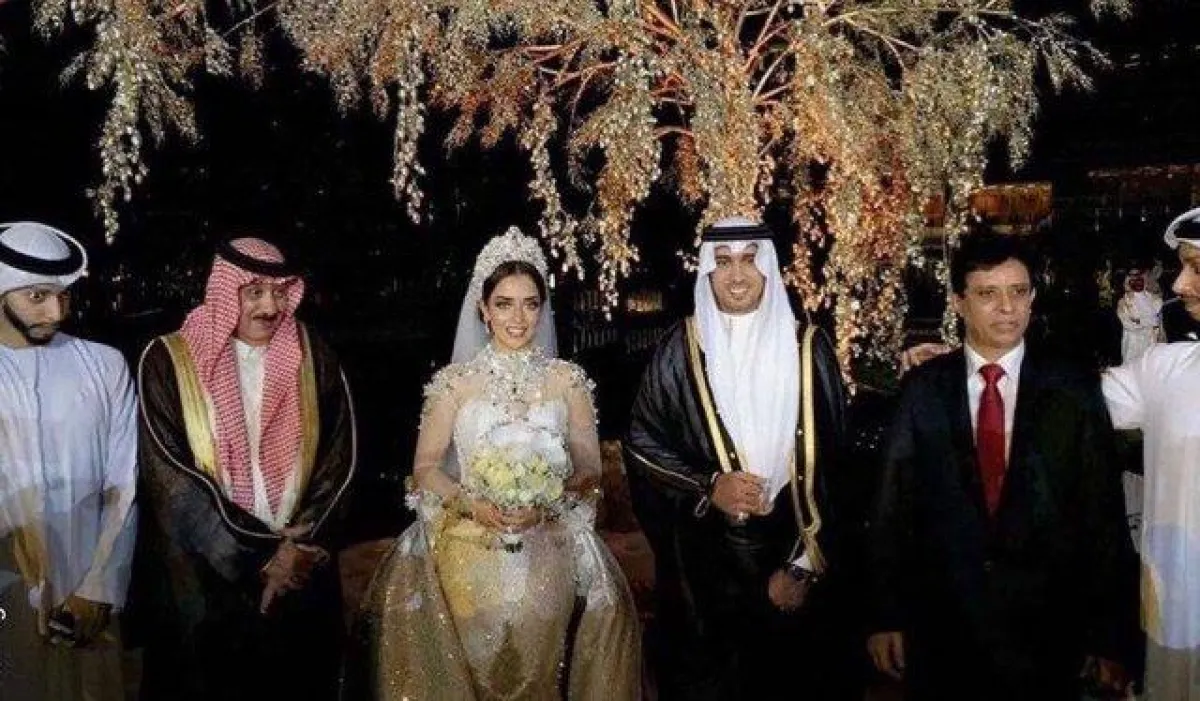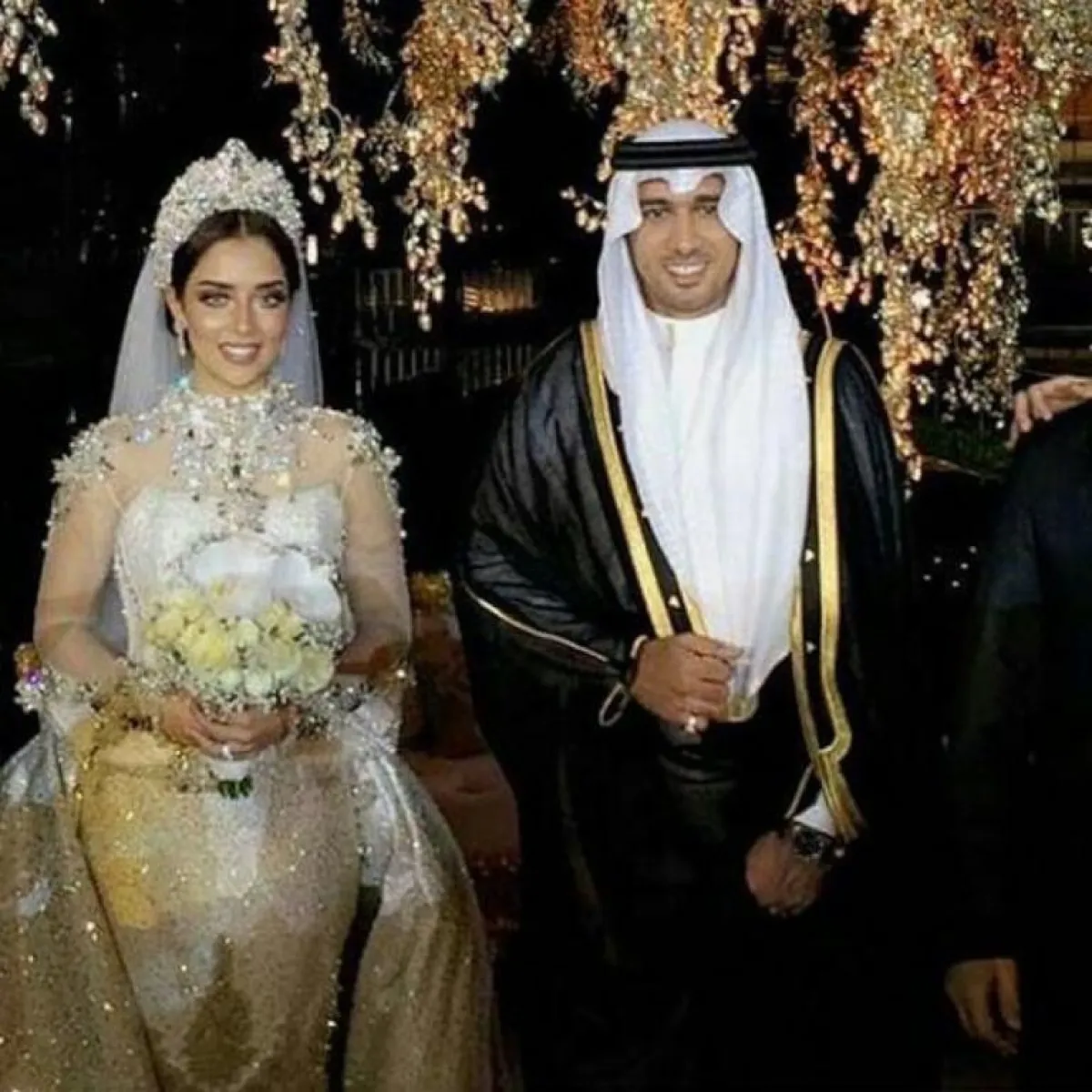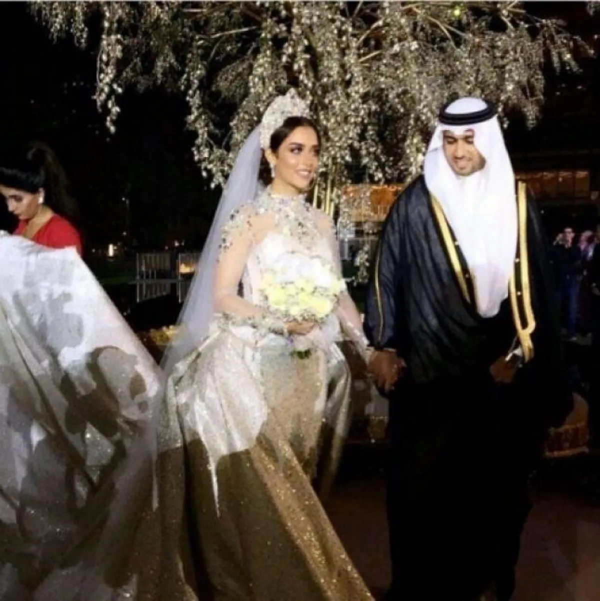 - ارتدى العريس الزيّ السعودي التقليدي فى الجزء الأول من حفل الزفاف، ثم بدلة كلاسيكية من روبيرتو كفالي.