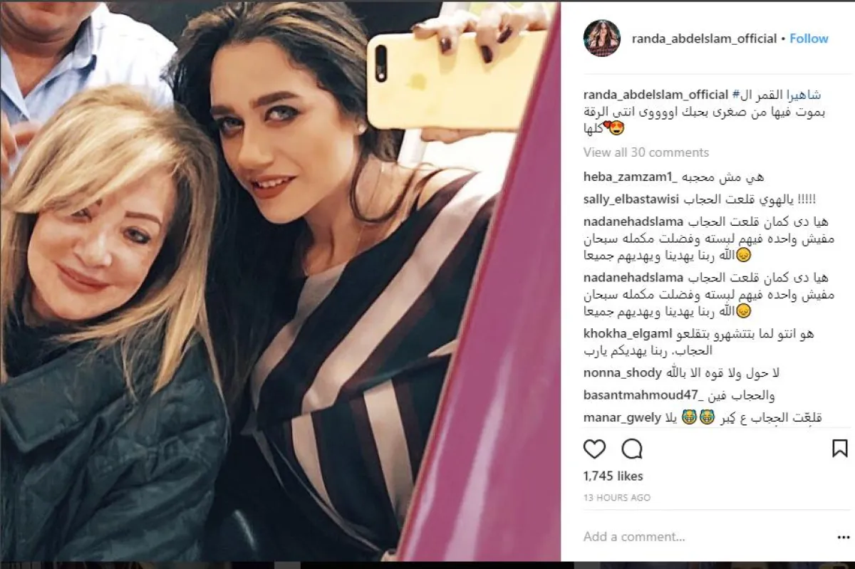 خبيرة التجميل راندا عبد السلام نشرت صورة عبر حسابها الرسمي على موقع انستقرام، بصحبة شهيرة، معلّقة: شهيرة القمر بموت فيها من صغري، بحبك أووووي إنتِ الرقة كلها، وانهالت التعليقات الغاضبة من قبل جمهور شهيرة، بسبب قيامها بخلع الحجاب بعد كل هذه السنوات من ارتدائه والاعتزال، إذ علّقت فتاة: "هيّ دي كمان قلعت الحجاب مفيش واحدة فيهم لبسته وفضلت مكمّلة، سبحان الله ربنا يهدينا ويهديهم جميعًا".