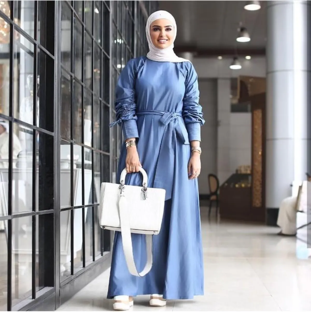 الفاشينيستا المحجبة سندس القطان أبهرت العالم باطلالاتها الأنيقة المنوعة بين الكاجوال والسبور، واخترنا من بين أزيائها، اطلالة كاجوال باللونين الأسود والبيج، وأخرى بفستان أزرق اللون مع حقيبة يد بيضاء.