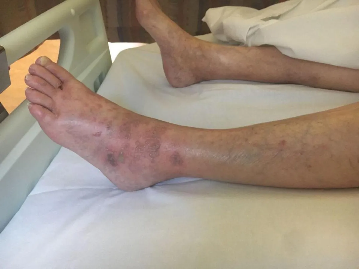 وزارت السيدة المسنة قسم المتابعة والتقييم في المستشفى، بعد أن أصبحت قلقة بشأن حالتها التي استمرت 4 أيام. وقالت لأطبائها كيف بدأ الطفح الجلدي بالظهور على قدميها، قبل أن ينتشر إلى فخذيها وصدرها وبطنها.
