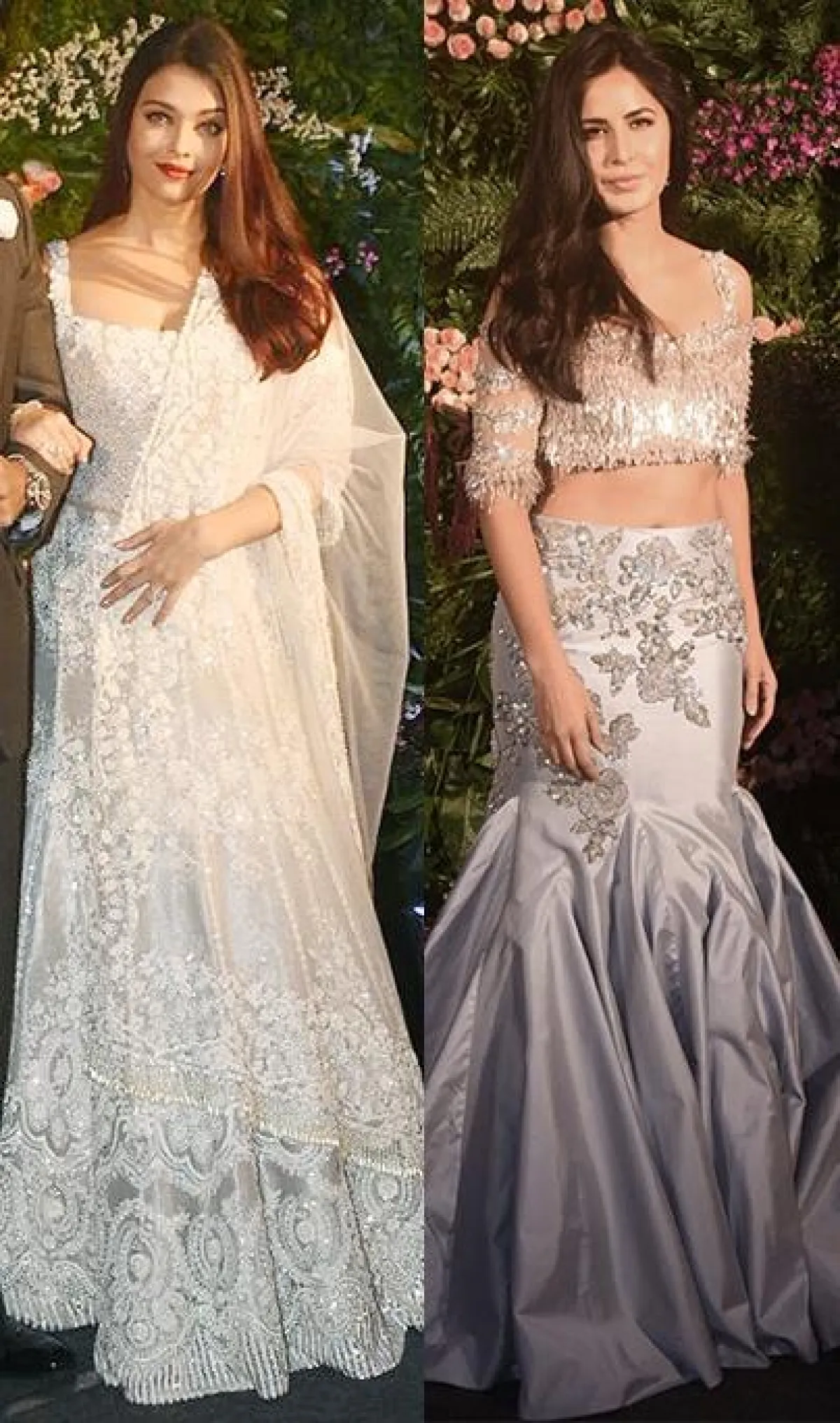 تألقت نجمتا بوليوود آيشواريا راي Aishwarya Rai وكاترينا كيف Katrina Kaif بالساري الهندي من تصميم Manish Malhotra، وذلك خلال حفل الاستقبال الذي أقامته النجمة انوشكا شارما Anushka Sharma وزوجها كابتن منتخب الكريكيت الهندي فيرات كولي Virat Kohli مؤخرًا، قبيل حفل زفافهما في مومباي.