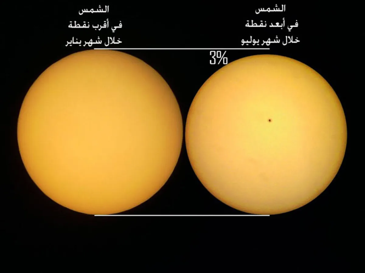أما عندما تقترب الأرض من الشمس، فإنها تبدو أكبر من المعتاد بحوالي 3% فقط، وهي أصعب من القمر فلا يمكن ملاحظتها إلا عبر أجهزة الرصد الخاصة.