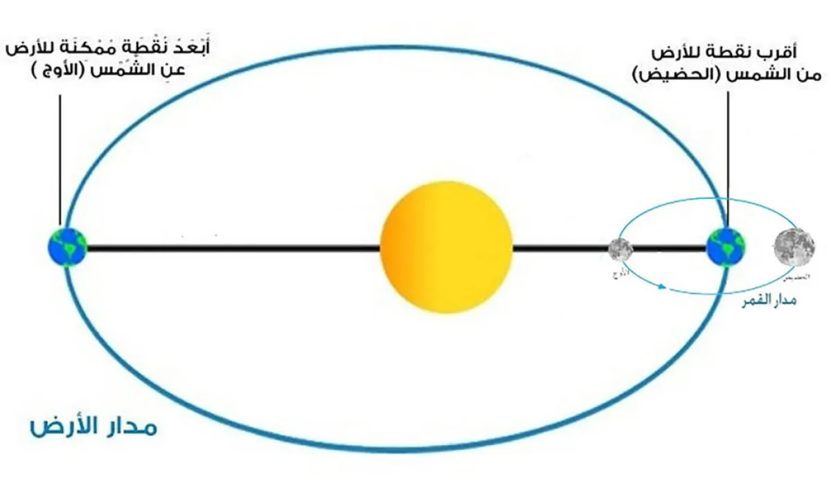والقمر والأرض كبقية الأجرام في الكون، يصل القمر إلى أقرب نقطة خلال دورانه حول الأرض كل شهر مرة واحدة، بينما تصل الأرض إلى أقرب نقطة من الشمس مرة كل عام.