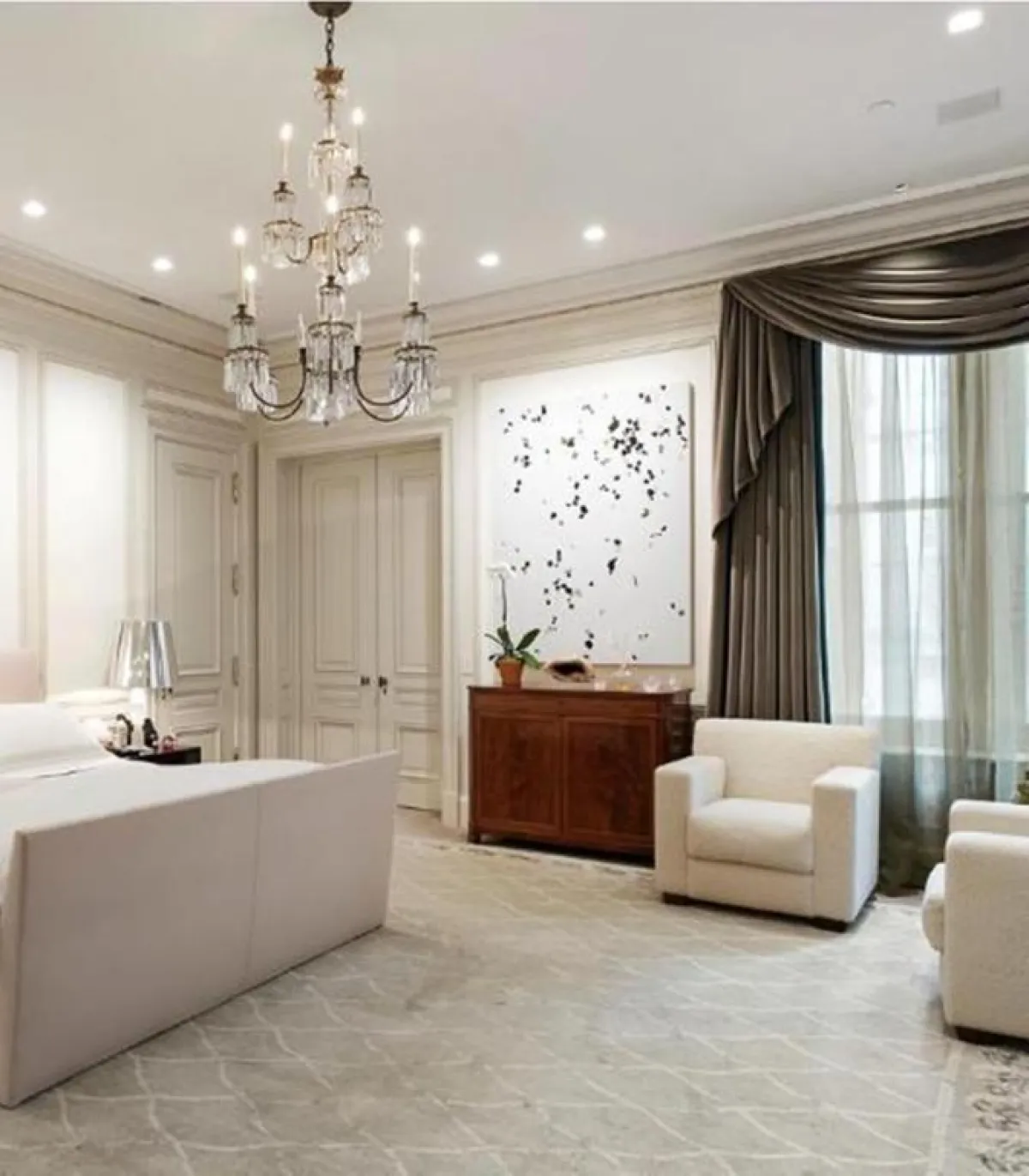 ويضم القصر الفاخر ست غرف للنوم، وتسعة حمامات موزعة على ستة طوابق، يربطها مصعد داخلي، وتتدلى من الأسقف ثريات فاخرة، وهناك مساحة شاسعة للاستراحات وإقامة الحفلات ومطبخ منفصل وغرفة لتناول الطعام في الطابق الثاني، بحسب«24».