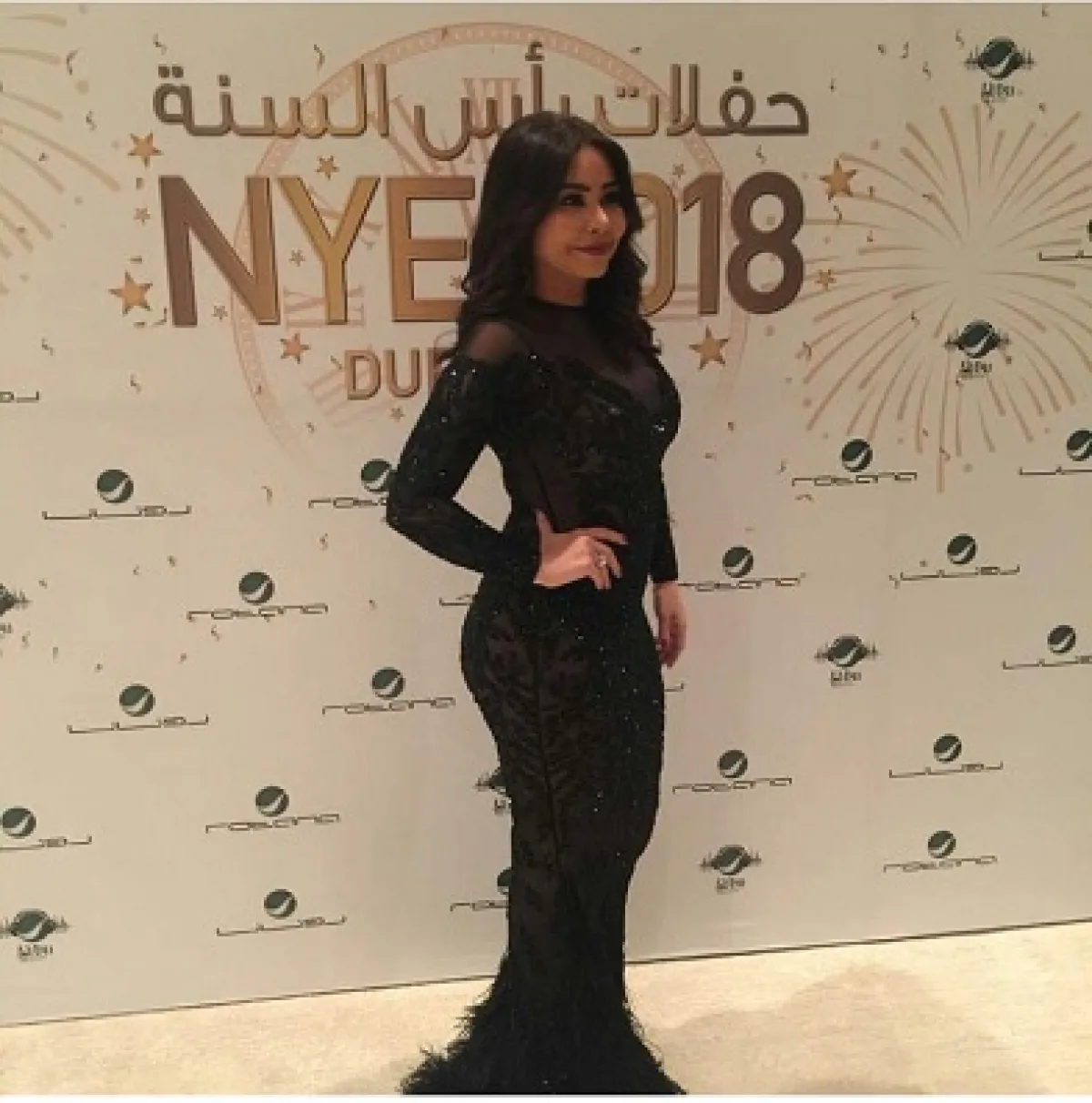 شيرين عبد الوهاب : شيرين التي شاركت إليسا في الحفل الذي أقيم في دبي ، اختارت أيضاً فستاناً باللون الأسود.