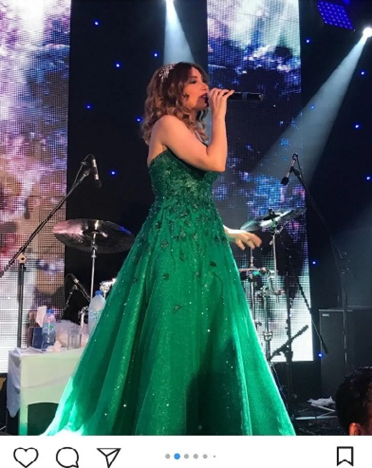 نيكول سابا : أحيت الفنانة اللبنانية حفلتين في مصر، الأولى في منطقة الجونة والثانية في القاهرة واختارت فستاناً من المصمم اللبناني الشاب شربل زوي.