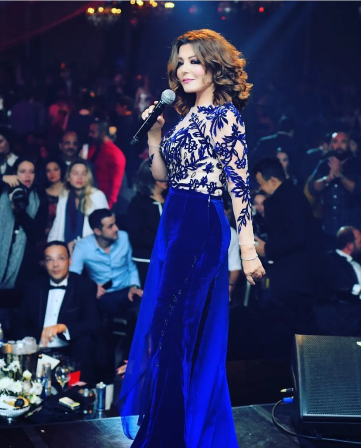 سميرة سعيد :أحيت الفنانة المغربية سميرة سعيد حفلة نهاية العام في مصر واختارت لإطلالتها جمبسوت باللون النيلي من تصميم المصمم المصري هاني البحيري .