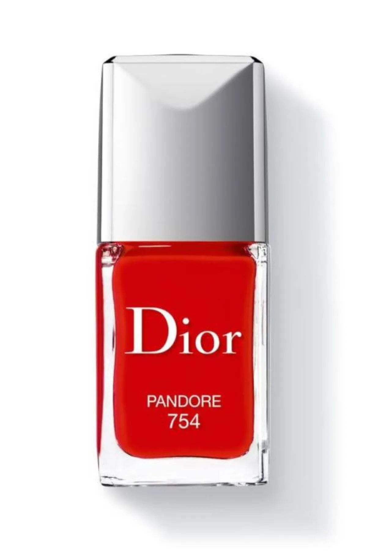 - Dior Vernis Gel Shine and Long Wear Nail Lacquer in "Pandore": سواء كانت بشرتك سمراء أو بيضاء، فهذا المناكير سيجعل أظافرك قبلة للأنظار، وستسمعين بالتأكيد الكثير من الإطراءات، إذ إنه يتميز بلون أحمر جميل وجذاب.