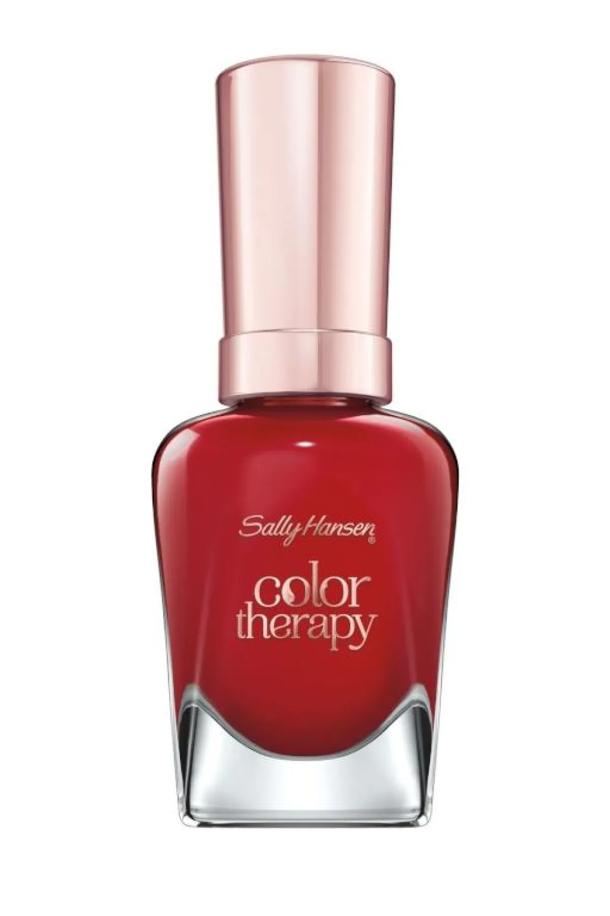 - Sally Hansen Color Therapy Nail Polish in "Red-y to Glow": إن استخدام هذا المناكير يشبه تمضية يوم في صالون العناية بالأظافر، إذ يشتمل على مكونات عدة مفيدة جداً لأظافرك، مثل زيت الأركان وفيتامين E لتغذية الأظافر الجافة، وزيت زهرة الربيع المسائية لتعزيز نموها وطولها، ناهيك بالطبع عن لونه الأحمر الأنيق.