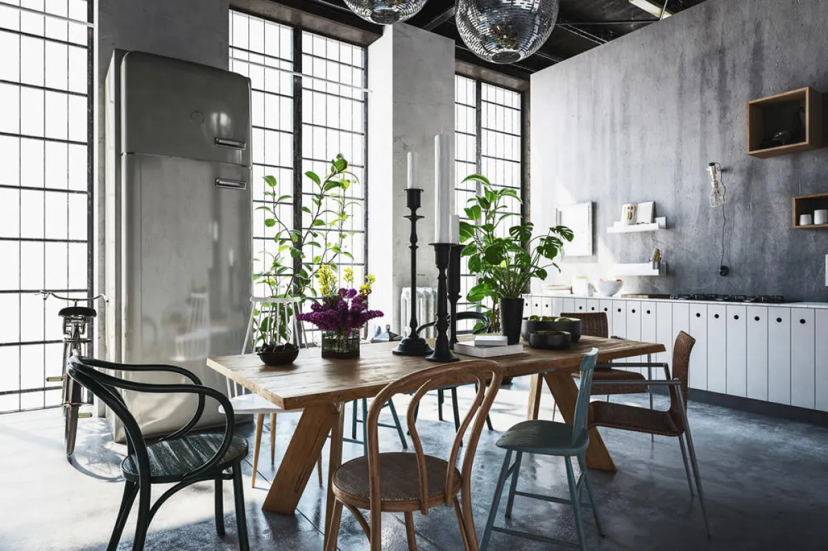 | إذا كانت طاولة الطعام تنتمي إلى الطراز الـ"ألترا مودرن"، ومصنوعة من المعدن (الحديد أو الستانيلس ستيل) وذات حواف حادَّة، يحلو تحقيق التناقض في ديكور المساحة من خلال اقتناء البوفيه بطراز ريفيّ، ترتفع على قوائم كلاسيكيَّة، وإنَّما مطليَّة بلون صارخ كالأصفر مثلًا.