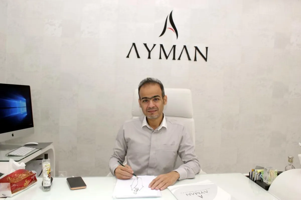 - عندما كنت بديناً كانت التصميم بالنسبة لي مجرد هواية، ولا أحد يعرفني أو يراني، لأنني كنت أصمم في الكواليس ولا أظهر للعملاء، وبعدما افتتحت "دار أيمن للأزياء" وبدأت أظهر للناس اختلف الوضع معهم، فصرت أسمع من البعض، أنت صورة، إذا لم تهتم بنفسك فكيف ستهتم بي؟. فقلت إن الملابس الجميلة تحتاج إلى جسم متناسق، وأنا كنت بديناً نوعاً ما. وأشعر بعدم الرضى في بعض العيون، كأنها تقول: كيف يكون مصمم أزياء وهو بدين؟ لكن الموقف الذي جعلني أفكر جدياً في تخسيس وزني وعمل تكميم هو طلب أحد العملاء مقابلتي، فخرجت وسلمت عليهأ وأحسسيت أن نظرته اختلفت. وكأنه يقول: هذا ليس المصمم، بل مصارع وزن ثقيل. بعدها اتخذت قراري ونفذته وعملت عملية تكميم، لأحقق أمنيتي في أن ألبس تصاميمي وأنا جسمي رشيق.