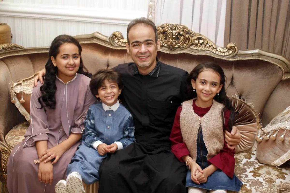 عندما بدأنا الحوار مع أيمن قالت ابنته ريتاج أريد أن تسألني أنا أولاً، فقلنا لها ماذا تفعلين عندما يكون "بابا" يرسم في البيت؟ فقالت: "أكون بجانبه، وأحيانا يسألني ماذا يلبس فأقترح عليه، وأحيانا أطلب منه يصمم لي عباية لي ولأختي".