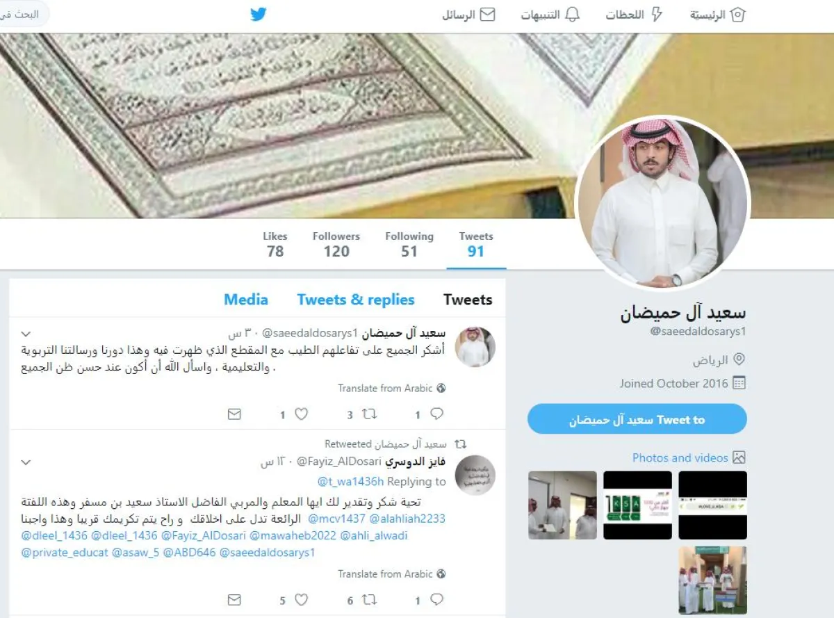 وقال المعلم آل حميضان عبر حسابه الشخصي على "تويتر": "أشكر الجميع على تفاعلهم الطيب مع المقطع، الذي ظهرت فيه، وهذا دورنا ورسالتنا التربوية والتعليمية، وأسأل الله أن أكون عند حسن ظن الجميع".