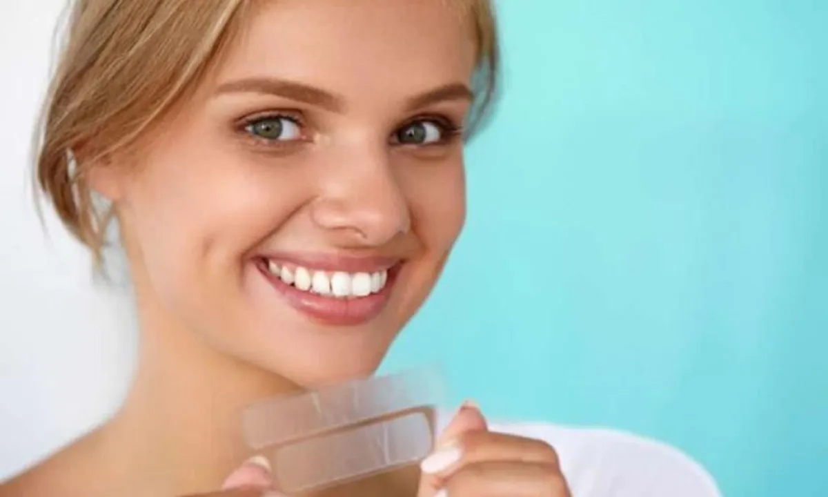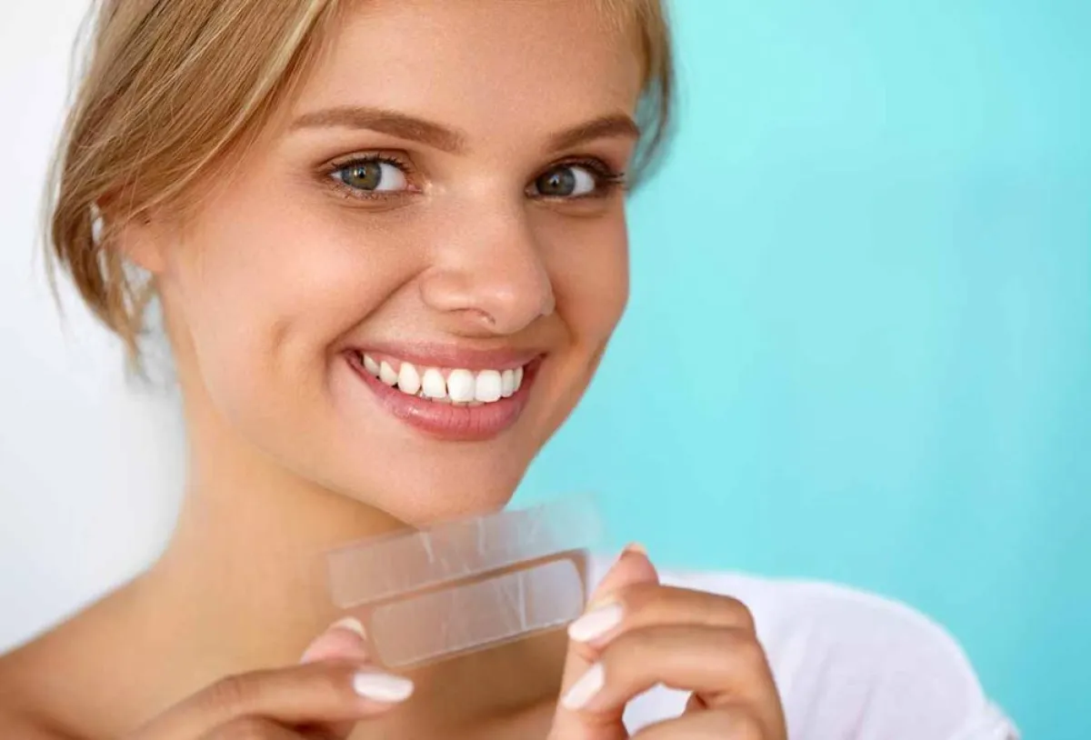 • التبييض باستخدام الملصقات: هي عبارة عن شرائط شفافة تتناسب مع شكل الأسنان انتشرت في الفترة الأخيرة، ولاقت اقبالًا كبيرًا من قبل الأشخاص، لسهولة استخدامها. ولكن كما أنّ لها نتائج إيجابية، لها أيضًا أضرار، منها: عدم قدرتها على الوصول للأسنان الجانبية أو الخلفية لقصرها. وبسبب سهولة انتقال مادة التبييض من الملصق إلى اللثة، فانّ ذلك يشكل ضررًا للثة.