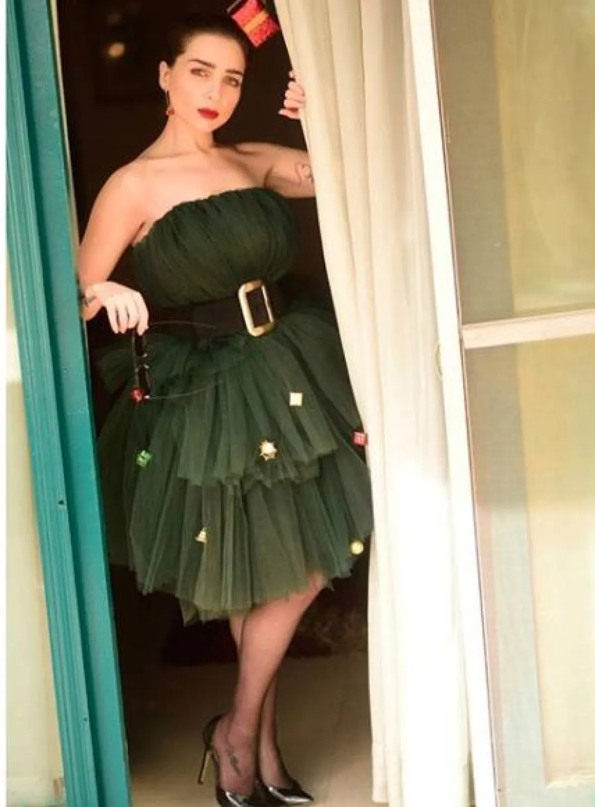 وقد رأيناها في عدد من الفساتين الجميلة بألوان تنوعت بين الأحمر والأسود، والبنفسجي والذهبي، أو تلك المعرّقة بالورود أو الزخرفات الناعمة، وقد حملت هذه الفساتين توقيع مصممي أزياء متنوعين، منهم: "مرمر حليم"، و"مايكل سينكو" Michael Cinco.