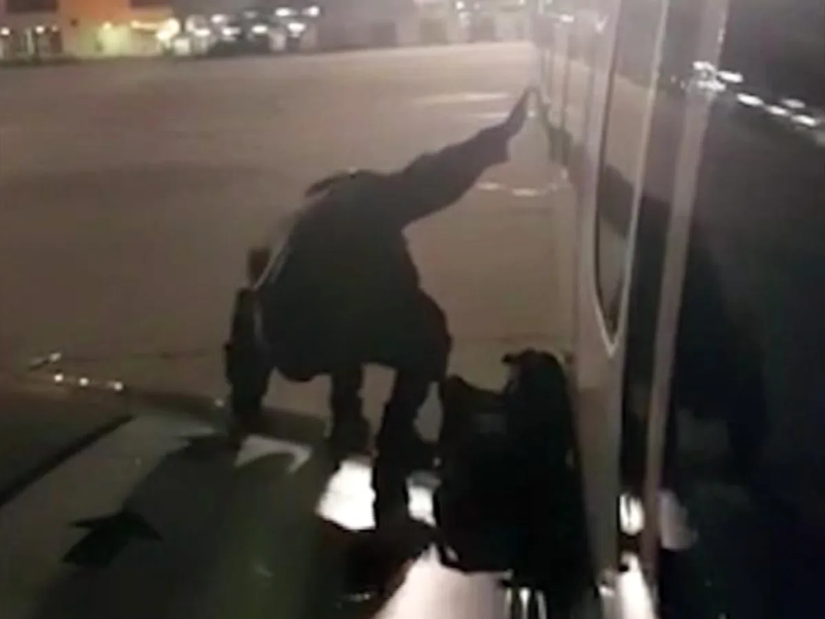 وقال شهود إنهم شاهدوا الرجل يحمل أمتعته معه ويحاول القفز من الجناح، قبل أن يوقفه أحد الموظفين.