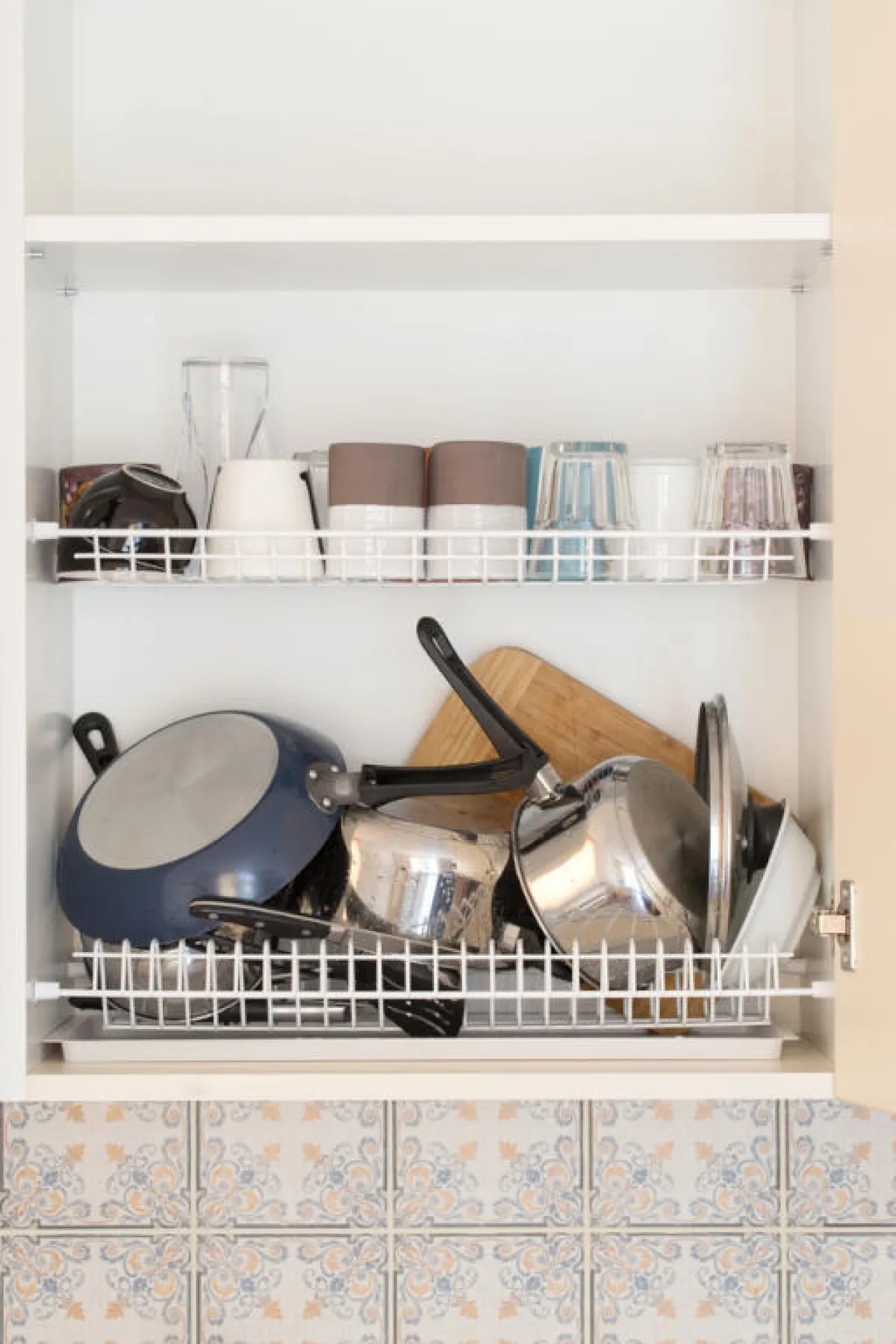 التدبير المنزلي: من المُفضَّل شطف كل رفٍّ من رفوف مصفاة الأطباق بالماء والصابون، قبل البدء في جلي الأطباق
