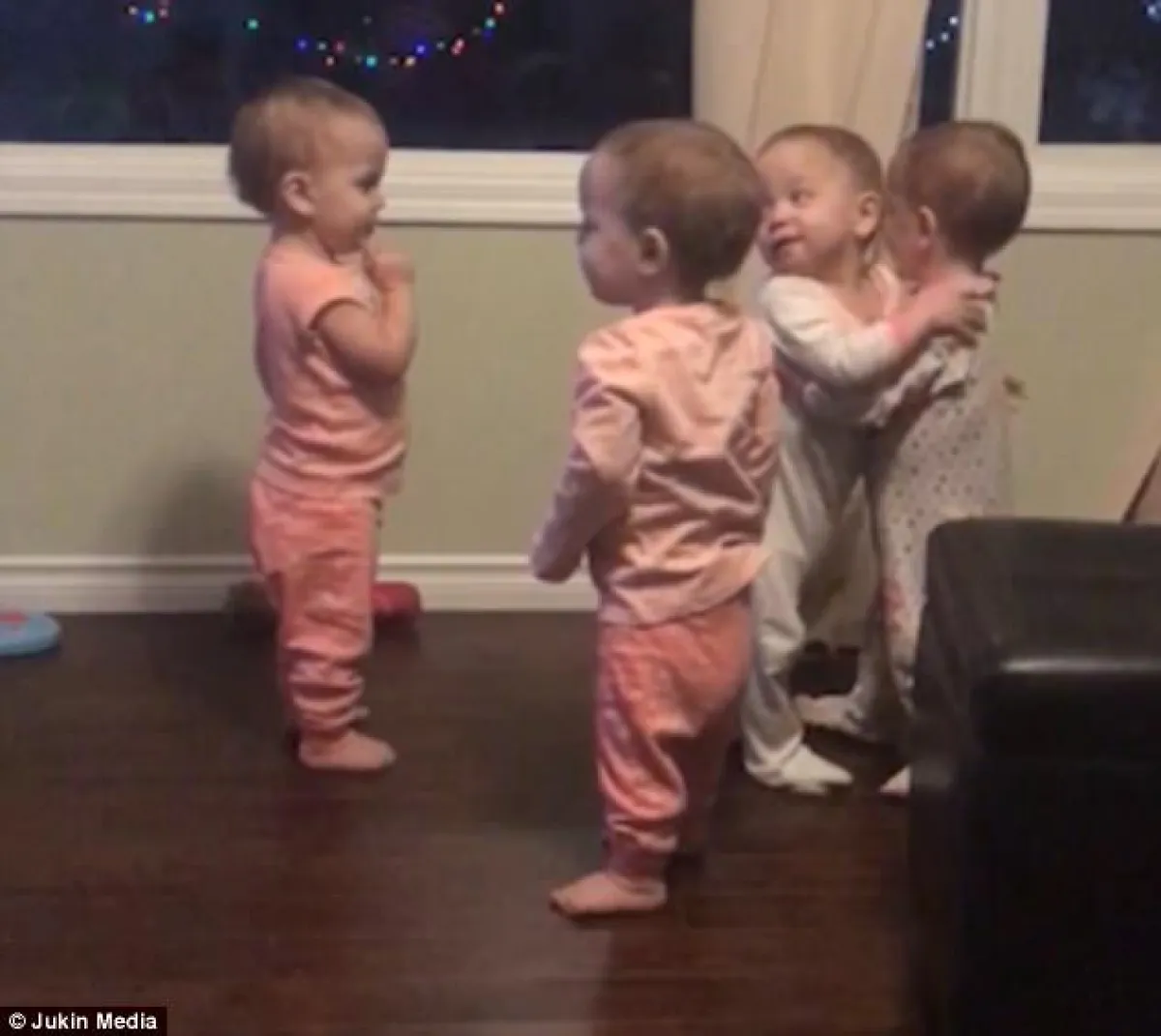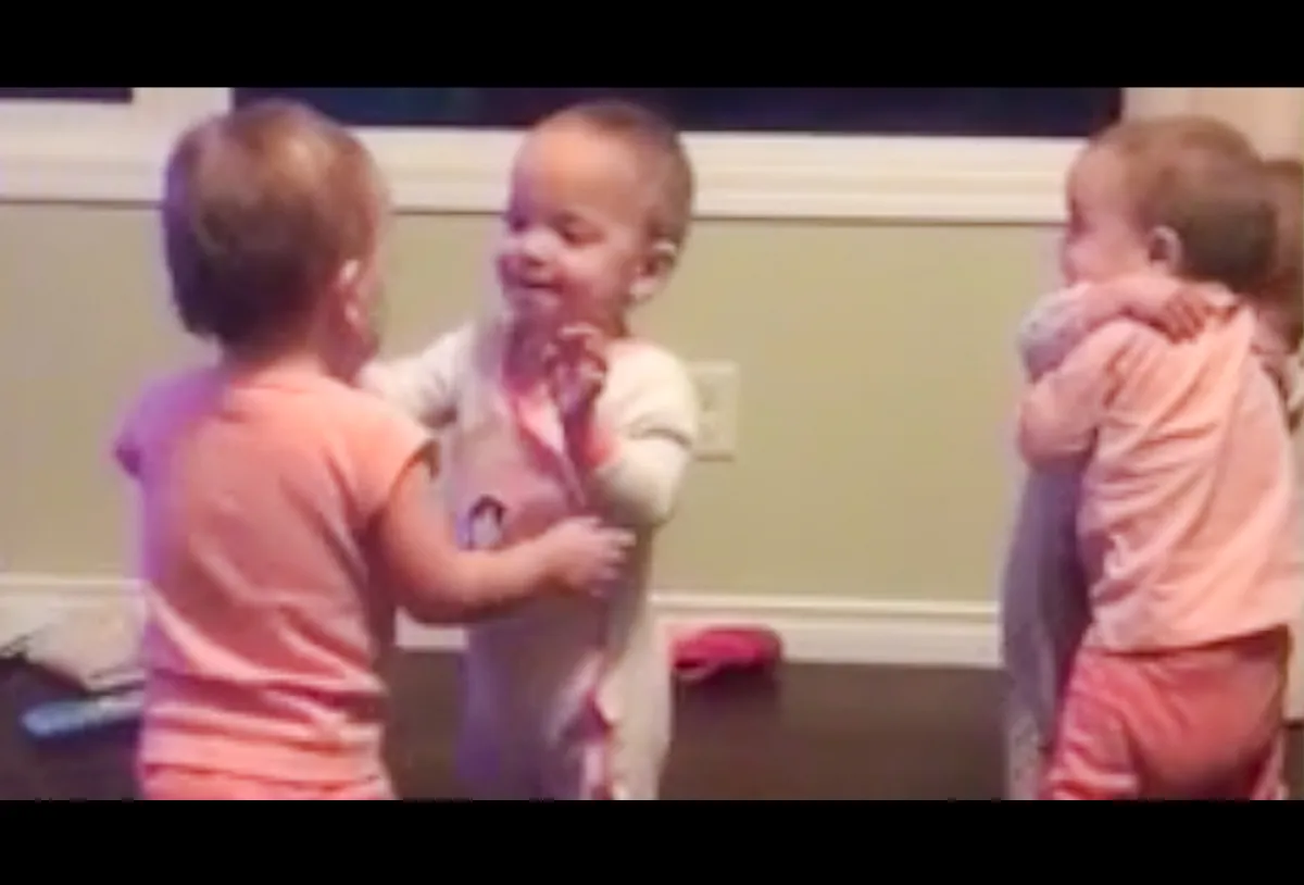 أشعل 4 أطفال توائم من الإناث مواقع التواصل الاجتماعي، وذلك بعد أن نشرت الأم فيديو للأطفال الأربعة يقمن بعناق بعضهن البعض بطريقة رائعة فى مشهد مؤثر للغاية، وطبقاً لموقع صحيفة «لاستامبا» الإيطالية فقد نشرت الأم «بيتاني» من كندا فيديو يظهر أطفالها الأربعة التوائم يعانقن بعضهن البعض أثناء مشاهدتهن لأحد الأفلام معبرين عن مدى اهتمامهن وحبهن لبعض، ويبلغ عمر الأطفال 19 شهراً وظهروا مرتدين ملابس النوم، وقد حقق فيديو الأطفال الأربعة «إبيجيل وإميلي ونعمة وماكايلا» الرائع أكثر من 28 مليون مشاهدة على موقع التواصل الاجتماعي فيس بوك، حيث ظهرن مثل الملائكة تحاول كل منهن التعبير للأخرى عن حبها بالعناق عشرات المرات بشكل منظم وفي ترتيب رائع.