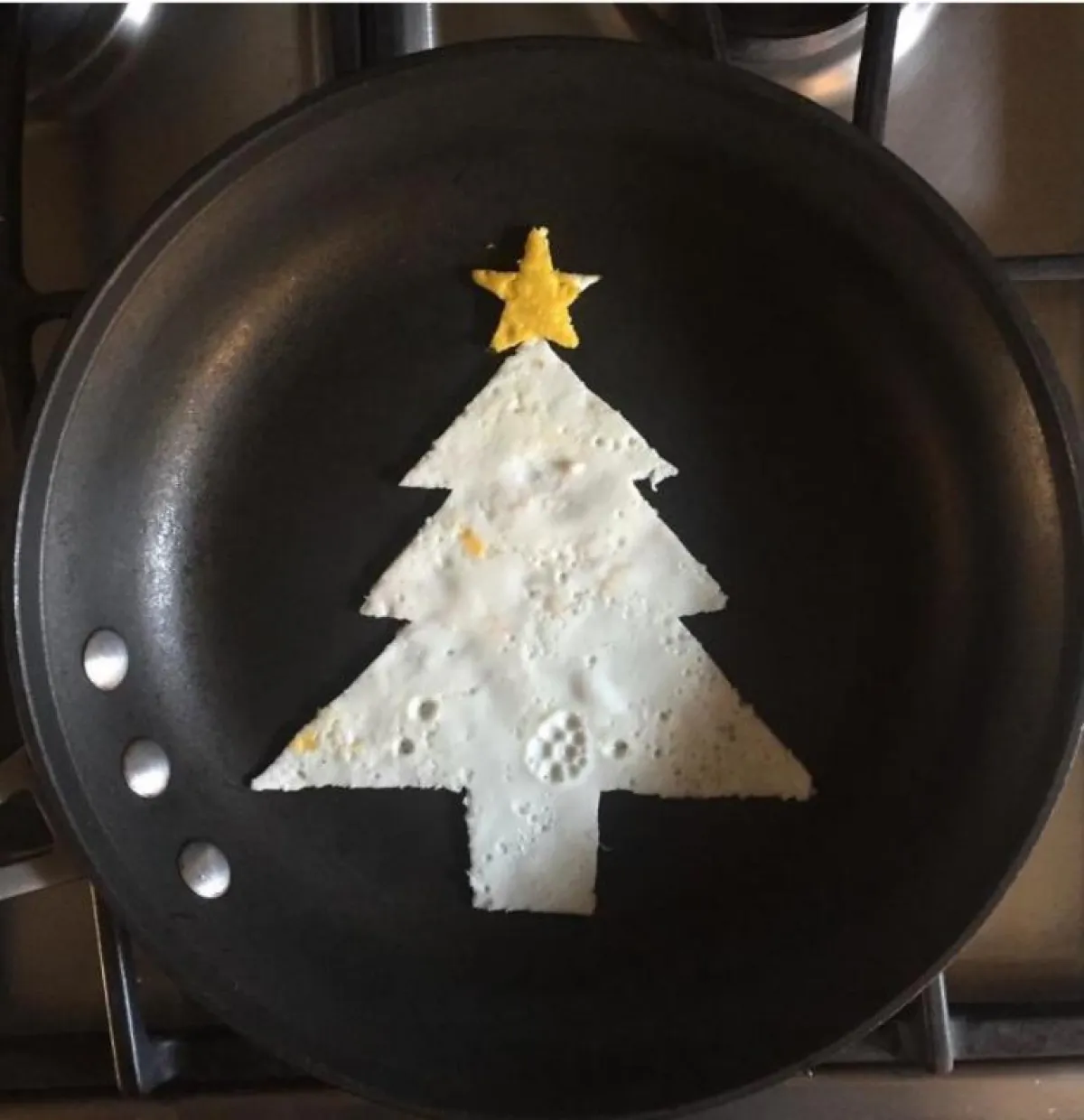 ورسم شجرة الكريسماس باستخدام بياض البيض الأومليت وأعلاها نجمة الميلاد باستخدام صفار البيضة الأومليت، بينما في رأس السنة رسم سنة 2018 إلى جانب رسمة للموسيقى، والذي كان يهنئ من خلالهما الجميع بحلول السنة الجديدة.