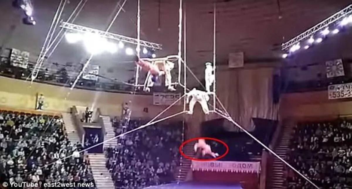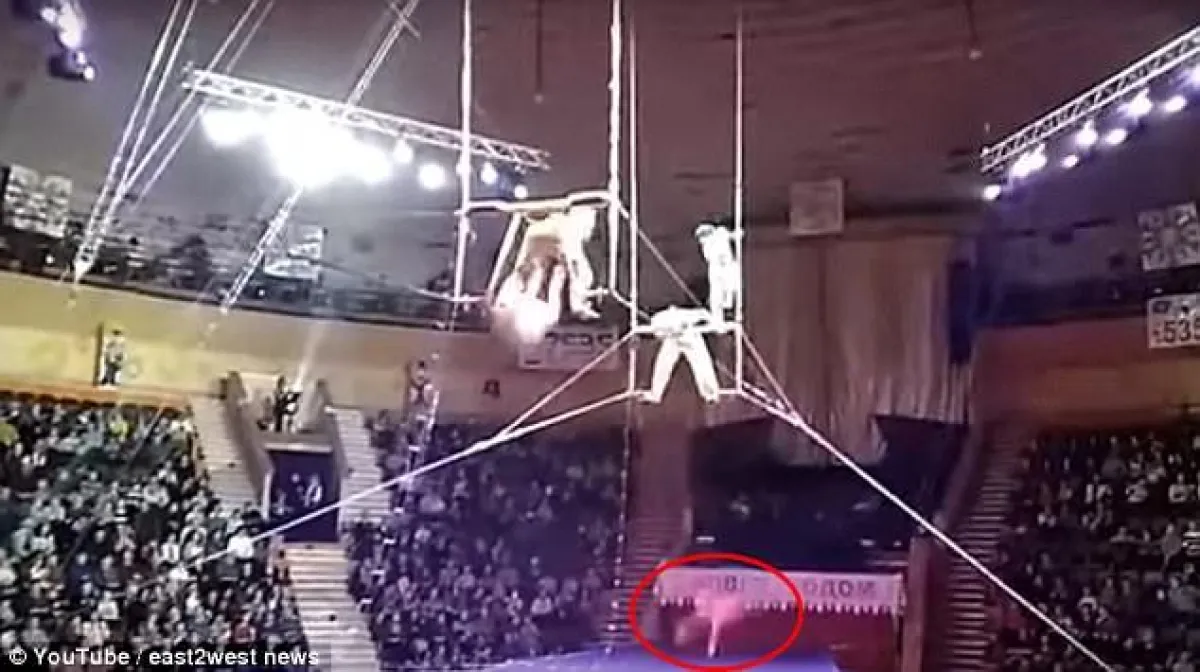 وظهرت اللاعبة يوليا تيكايفا، 20 عاماً، في مقطع فيديو انتشر على مواقع التواصل الاجتماعي وهي تستعرض أمام الجمهور، حيث كانت تتأرجح في الهواء بين يدي آخرين من زملائها، ثم هوت لتسقط أرضاً من ارتفاع 40 قدماً.