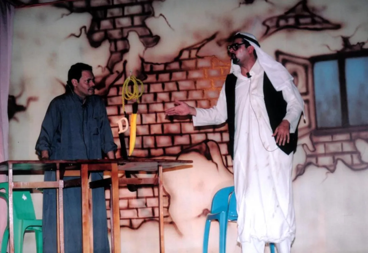 الممثل محمد الزهراني والممثل عماد اليوسف- لقطة من مسرحية البرتقالة