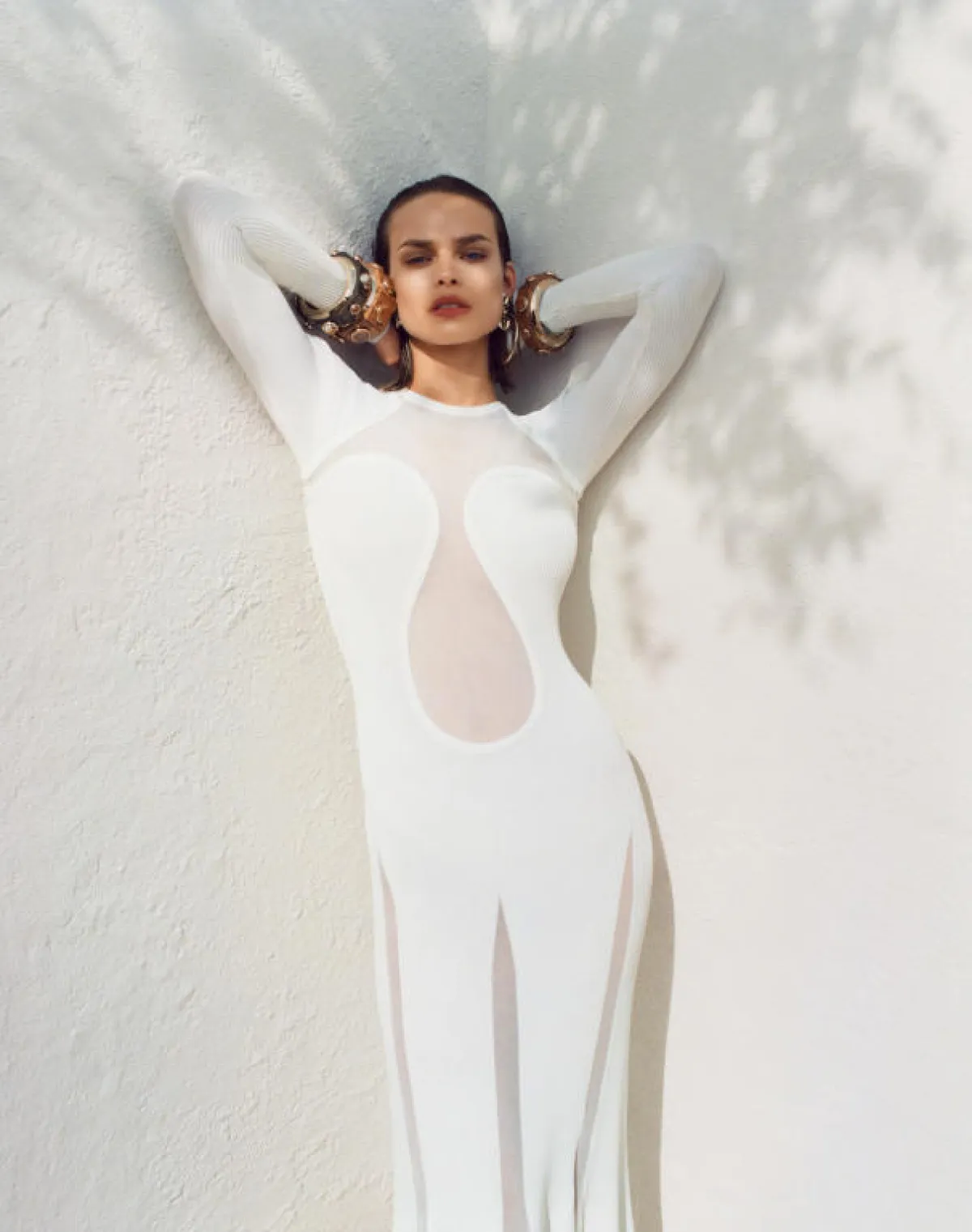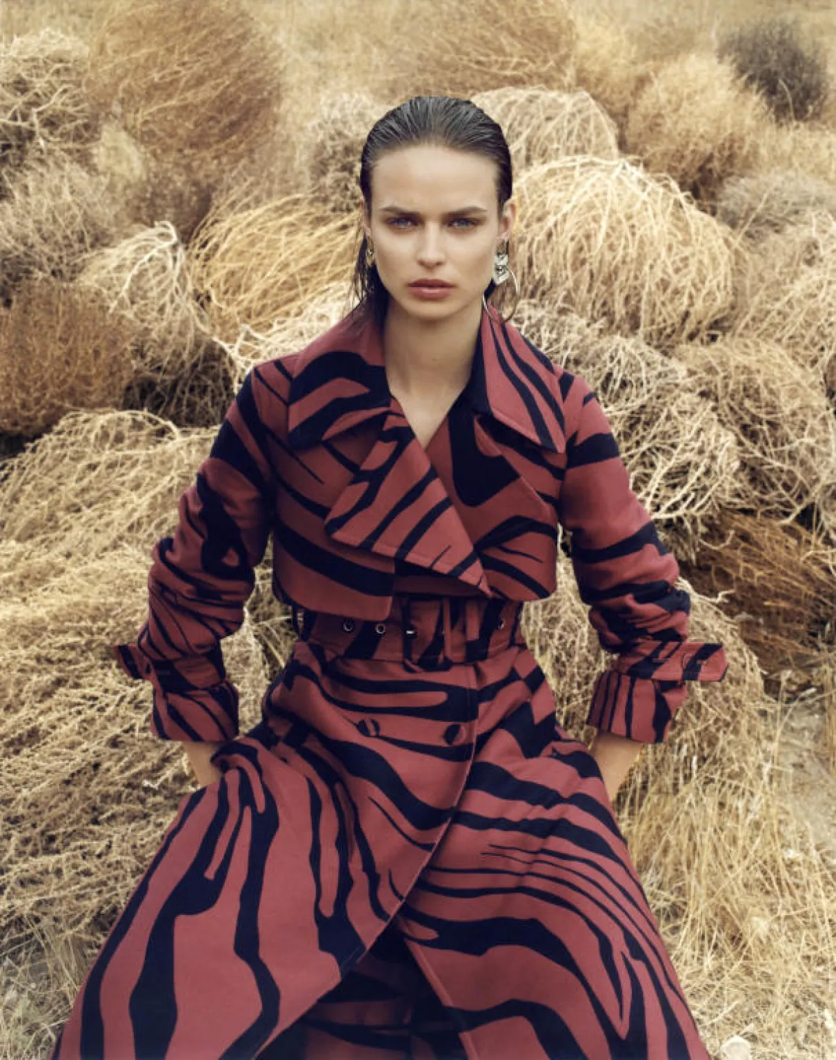 توحي بيرغيت كوس دائماً، سواء كانت واقفةً أمام جدار أو جالسةً على القشّ أو مستلقية على العشب، بذلك الحسّ المرهف النابض بالحياة الذي تتميّز به المرأة التي ترتدي تصاميم روبيرتو كافالي، والتي تعي جيداً قدراتها الفطرية التي لا يُشكّك فيها أحد.