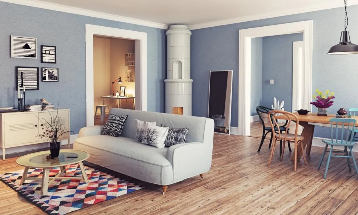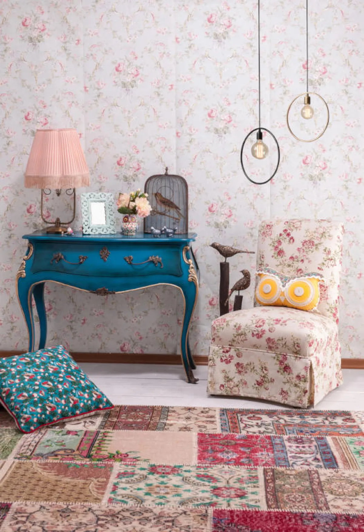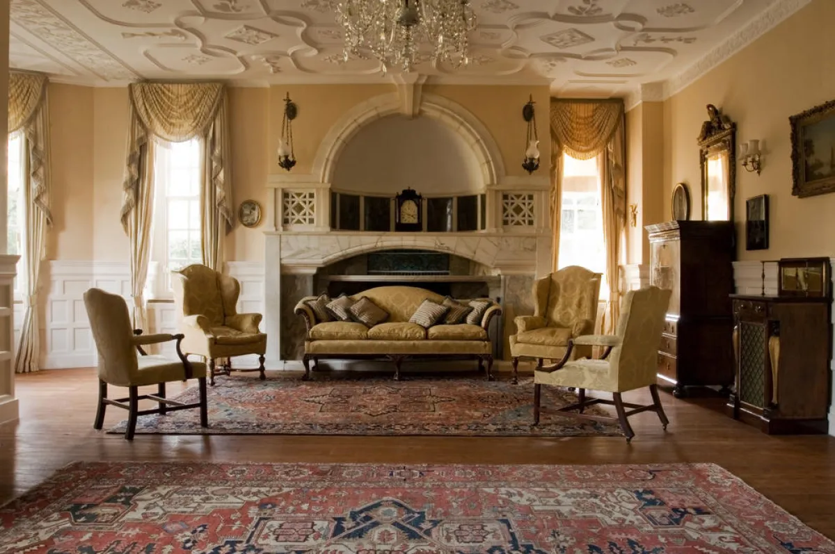 | الأرضيات المكسوَّة بالـ"باركيه" أو الحجر، والمزيَّنة بالسجاد.