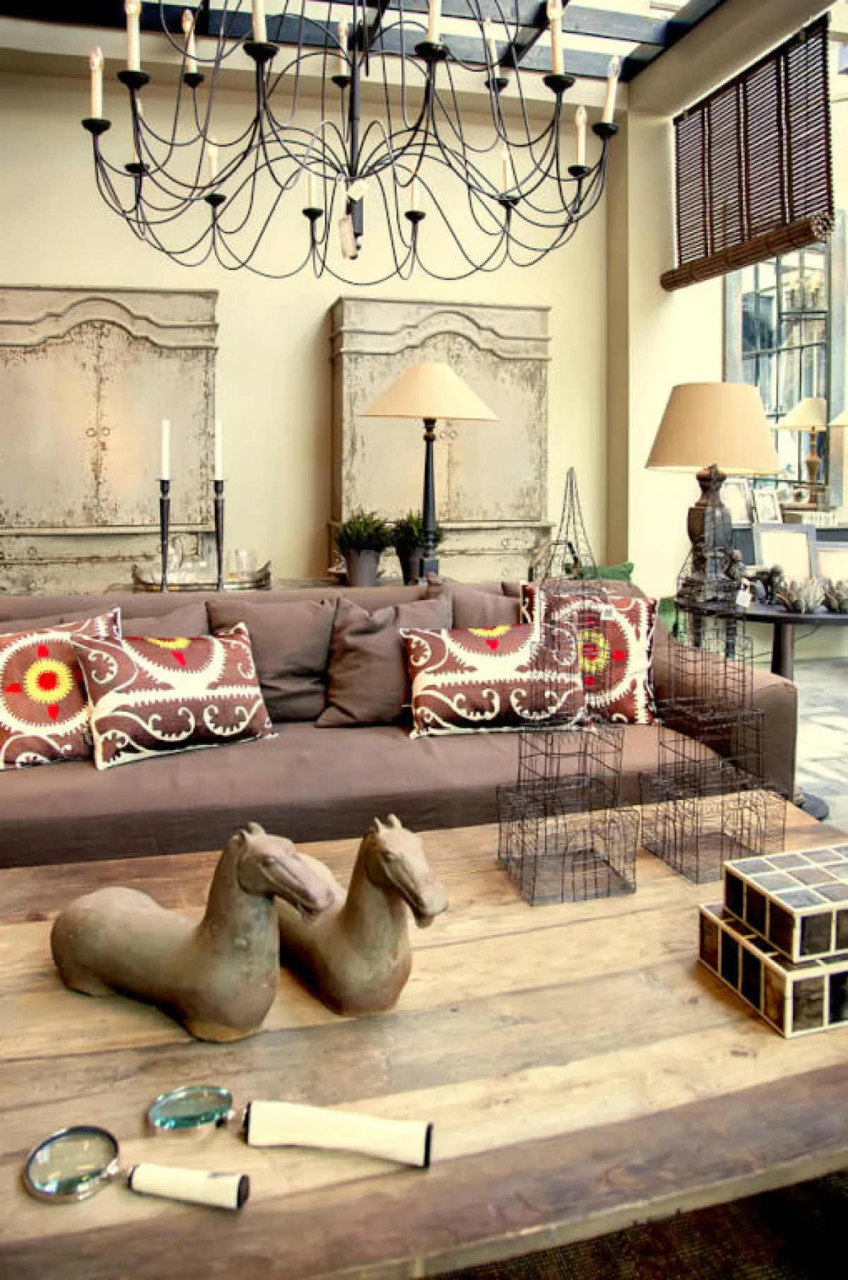 | الإكسسوارات، كالساعات القديمة وقطع الكريستال والزجاج وآلات الموسيقى والصناديق الخشب المحفورة والمرايا بأحجامها والجرار، إلى جانب الفازات والشمعدانات.