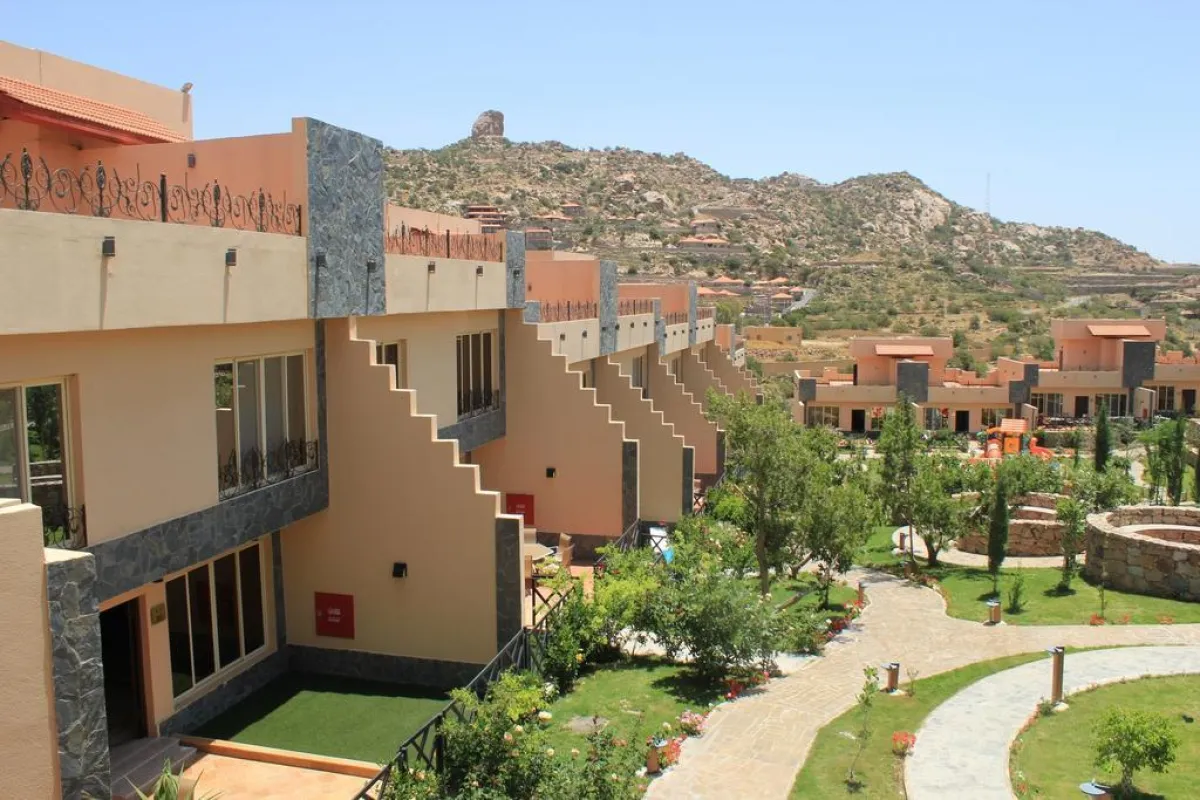 | مرافق المنتجع بالقرب من الـ"تيلفيريك": يحلو هناك الاستمتاع بنزهة عائليَّة، ضمن مساحاته الشاسعة الخضراء، أو تناول وجبة لذيذة في أحد المطاعم التي تطلُّ على جبال المنطقة الخلابة، وصخورها الضخمة. علمًا بأنَّ المرافق تتعدَّد في المنطقة، وتشمل: المدن الترفيهيَّة والألعاب المائيَّة وغيرها. أسعار الدخول: للكبار 80 ريالًا سعوديًّا (21 دولارًا أمريكيًّا)، وللأطفال أقل من 10 سنوات 50 ريـالًا (13 دولارًا أمريكيًّا)، يوميًّا، من الساعة 1 ظهرًا وحتَّى 12 منتصف الليل.
