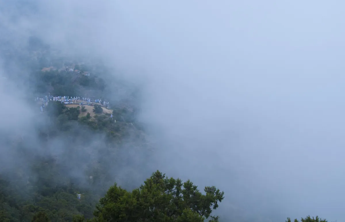 | الجبل الأخضر: تحوطه مُدرَّجات زراعيَّة خضراء، وهو يُمثِّل أحد عوامل الجذب السياحي لمدينة الضباب أبها.
