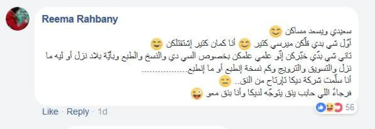 فقد انهمرت التعليقات التي تسأل عن صدور الألبوم وسوء توزيعه وعدم وجود نسخات منه في الفيرجين، فردّت ريما على المعلّقين بالقول إنّها لا تعرف أكثر منهم عن الألبوم والنسخ والطبع وفي أي بلاد صدر ولماذا لم يصدر والتسويق والترويج وكم نسخة طُبعت أو لم تُطبع. وقالت "أنا سلّمت شركة ديكا تإرتاح من النق... فرجاءً اللي حابب ينق يتوجّه لديكا وأنا بنق معو".