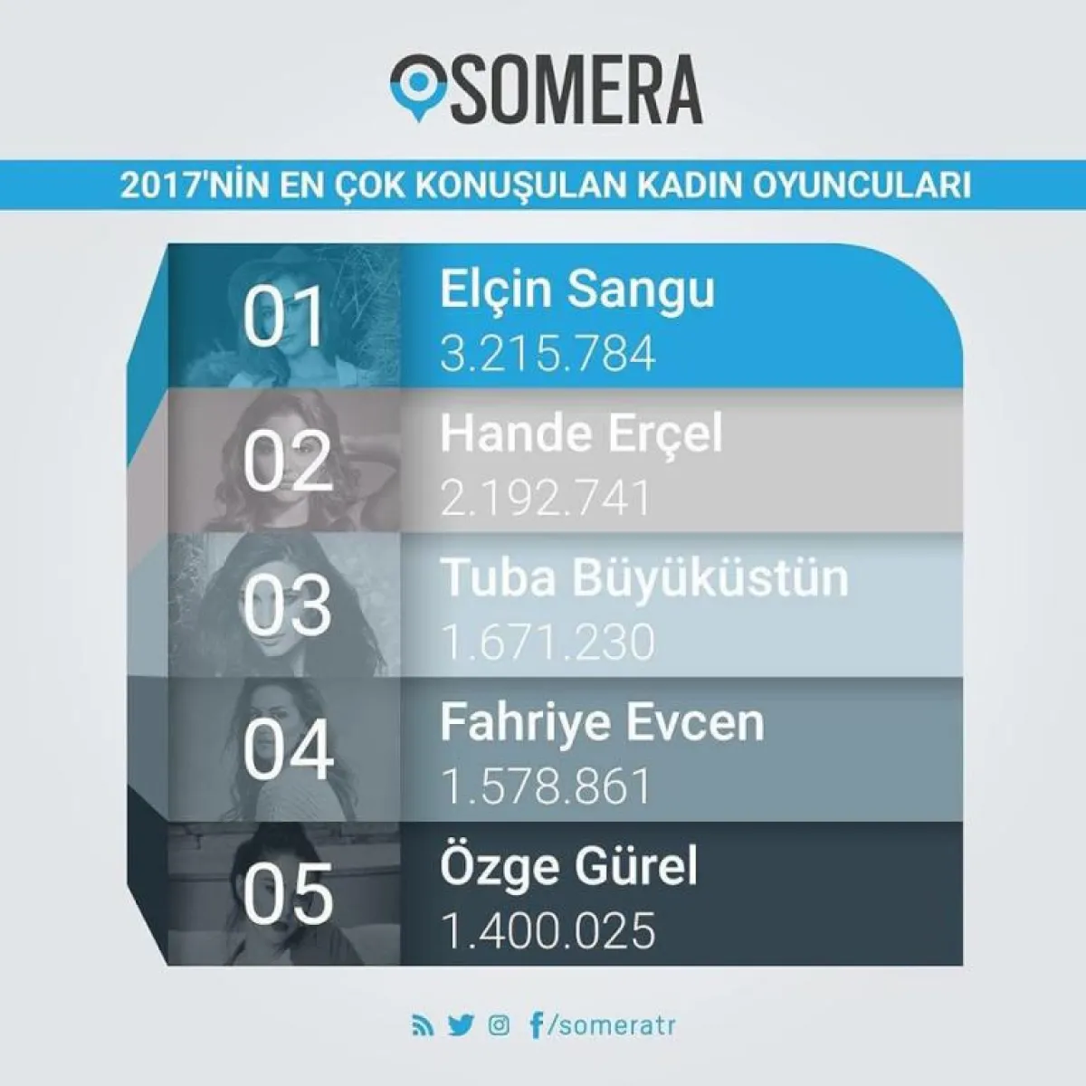 وهذا الاستقبال السلطاني من العرب لإلتشين ليس مستغرباً لتصدرها في كافة الإستفتاءات التركية والعربية بصفتها النجمة التركية الأكثر حديثاً في مواقع التواصل الإجتماعي لعام 2017، تلتها بالمركز الثاني الممثلة التركية هاندة أرتشيل وبالمركز الثالث توبا بويوكستون وتلتها بالمركز الرابع فهرية أفجين وبالمركز الخامس أوزغي غوريل.