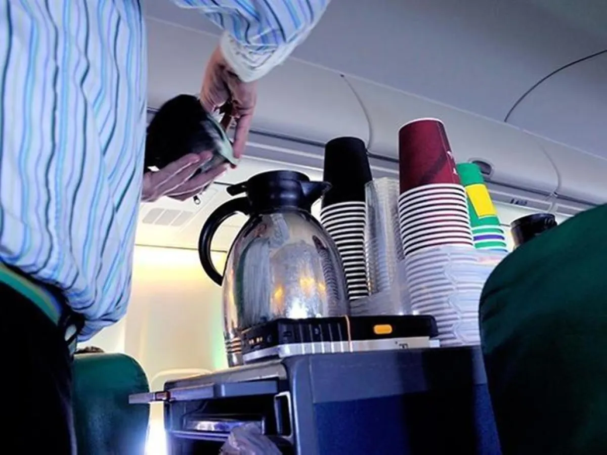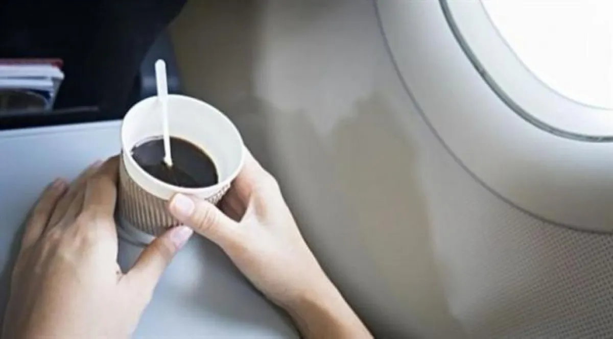 وتابعت المضيفة، لهذا السبب احذروا تناول القهوة أو الشاي أو أي مشروب ساخن على متن الطائرة، ولكن لا بأس بالمياه المثلجة والمعلبة.
